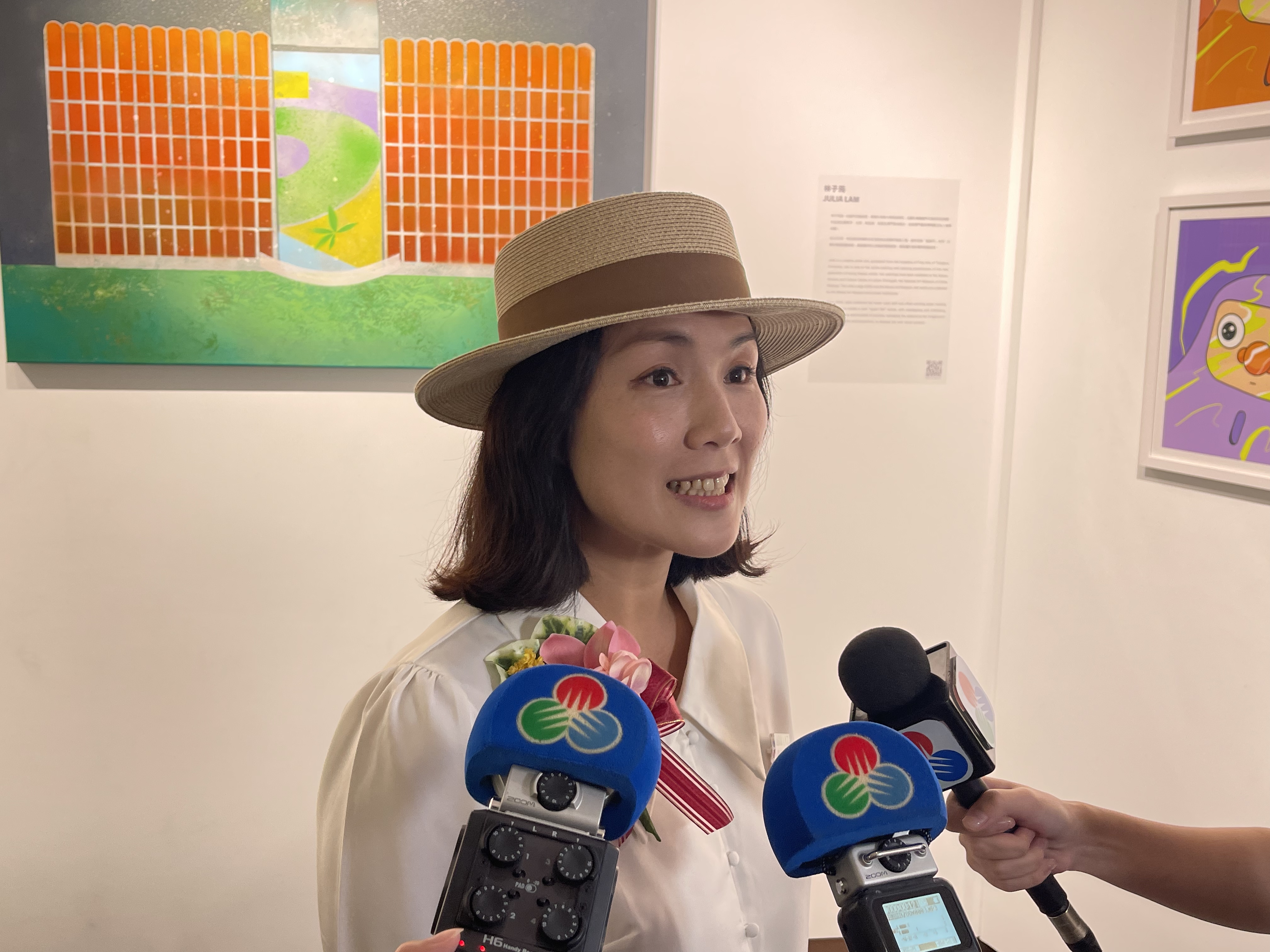 「Vibrant Art of Macau」展覽於今日下午四時舉行開幕儀式,立法會議員及何鴻燊博士基金會主席梁安琪、文化局代表澳門藝術博物館館長袁紹珊、Humarish Club 創始人及首席藝術總監華雨舟,聯同藝術家梁天兒、林家豪、林子筠及陳紹明,共同為展覽揭幕。