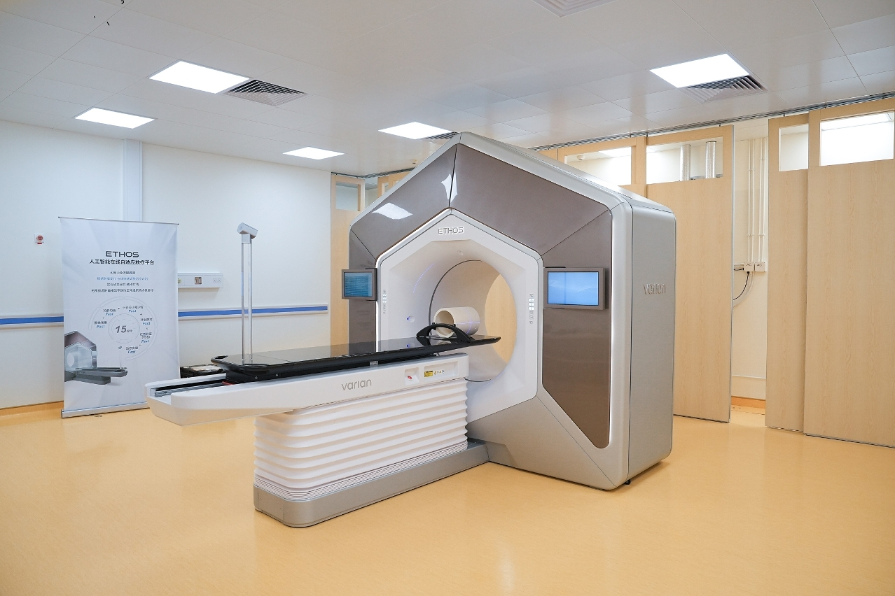而“人工智能在線自適應放療平台”(Ethos)又稱智速刀,則是港澳首台Ethos放射治療系統,亦是全球最新的人工智能化放射治療系統。該系統會根據腫瘤形狀、體積、大小、位置的變化,在線快速調整治療計劃,於15分鐘內完成從成像、勾畫治療範圍、設計治療計劃、劑量計算到實施治療的各項服務,相當於每次治療中都能為患者重新“量身定制”一個最適合其當下身體狀態的治療方案,提供最佳的治療效果。