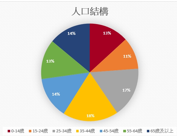 再者, 人口老齡化。統計暨普查局資料顯示,2023年底,0-14歲人口佔比13.2%,15-24歲佔比10.6%,25-34歲佔比16.7%,35-44歲佔比18.5%,45-54歲佔比13.8%,55-64歲佔比13.2%,65歲及以上佔比14%。與2022年底數據相比,0-14歲人口佔比下降,65歲及以上人口佔比上升且達14%,顯示澳門生育率下降的同時,已經步入老齡化社會。