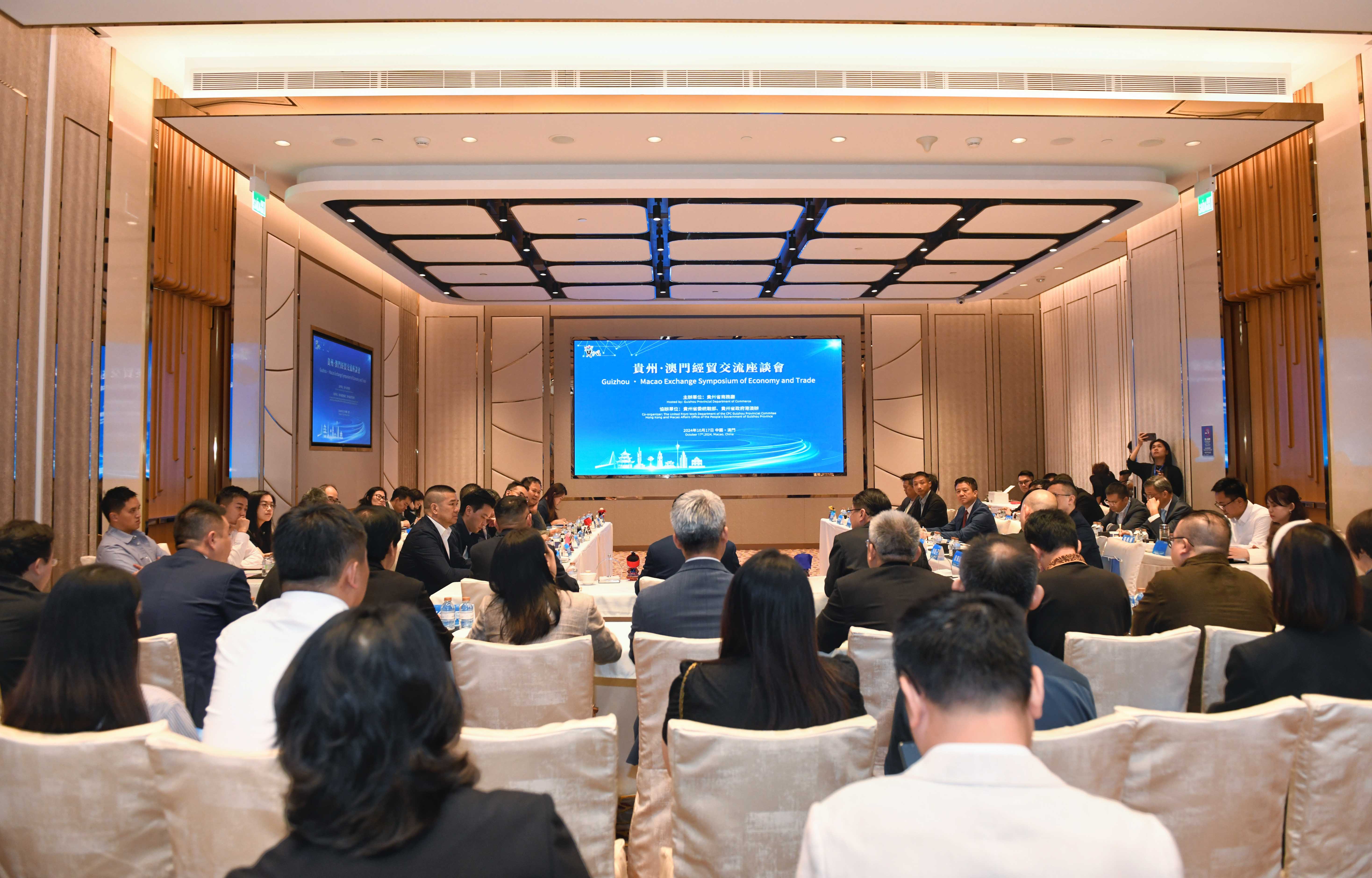 此次經貿交流座談會旨在分享貴州投資機遇,進一步加強黔澳兩地的互聯互通、促進投資貿易、深化合作交流,吸引了澳門中國企業協會、澳門貴州商會、澳門貴州聯誼會、澳門貴陽青年會、澳門中華飲食文化促進會、中國銀行股份有限公司澳門分行、中國工商銀行(澳門)股份有限公司、南光集團、南粵集團等相關機構、商協會、企業代表參會。