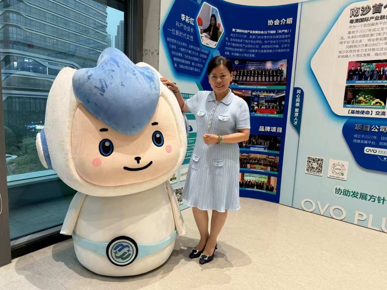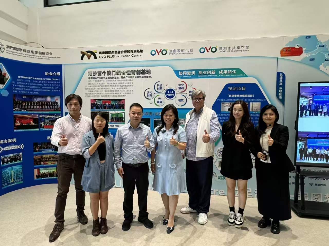 在青創基地參觀,常常能看到該基地的澳創家孵化器的LOGO——“OVO”。李彩紅介紹,這個標誌由三種顏色組成,紅色“V”代表祖國、藍色“O”代表南沙、綠色“O”代表澳門,寓意著大灣區牽引,把澳門和南沙的地緣拉近,形成一個獨特的關係。“OVO”在葡語中的意思為雞蛋,可以理解為孵化,澳創家孵化器是代表澳門青年創業之家的意思。