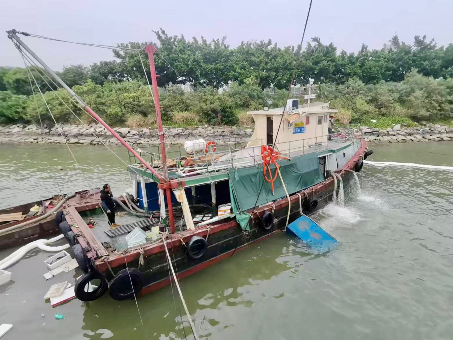【即時新聞】海事及水務局今早(4日)在旅遊塔對開海面,協助吊運船對昨晨碰撞護橋欄後傾側的漁船進行吊運打撈,利用抽水泵等設備,把傾側船隻扶正及吊起,並於今日下午4時完成打撈工作,肇事漁船被送往內地維修,打撈作業期間不影響海上通航。