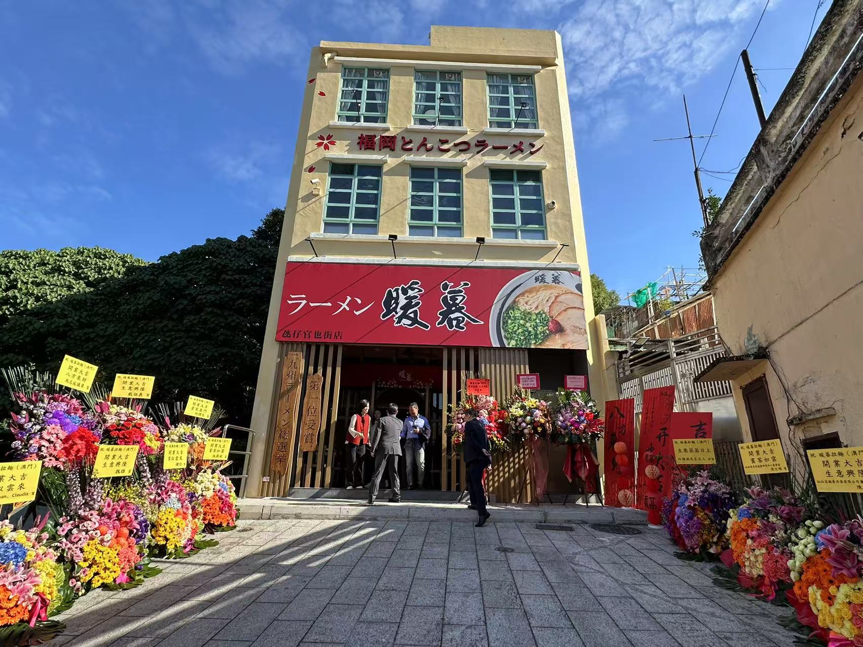 店舖選址在氹仔胡琴巷,開業慶典今日下午二時舉行,全國政協常委、立法議員何潤生,市政署市政管委會主席戴祖義,立法議員馬志成、胡祖杰、龐川、林倫偉、顏奕恆、馬耀鋒,日本UNISON有限會社會長片田康二(暖暮拉麵創始人)、社長中田賢一及顧問中村雅子,澳門青年企業家協會會長李居仁等嘉賓出席主禮。