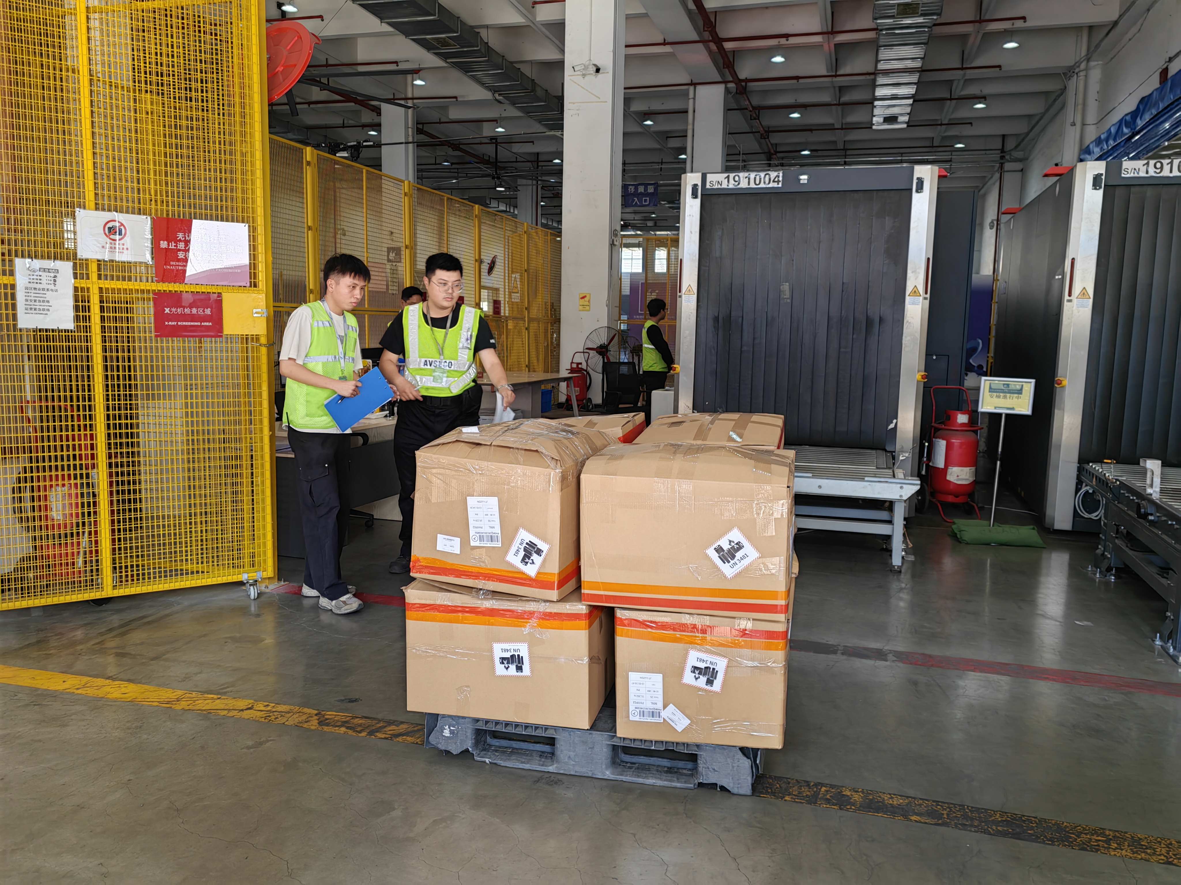 空港中心管控十分嚴格,各崗位都有一定的規矩和標準,記者在管制空運貨物安檢設施所見,一批準備出口的空運貨物,在多名檢驗人員核對信息後,由專門工作人員將一包包空運貨物,經傳送帶送入安檢口;待辦理海關通關手續、完成航空安檢和打板後,由貨站裝車經海運直達香港機場碼頭,再裝上飛機便可直達全球各個國家和地區。
