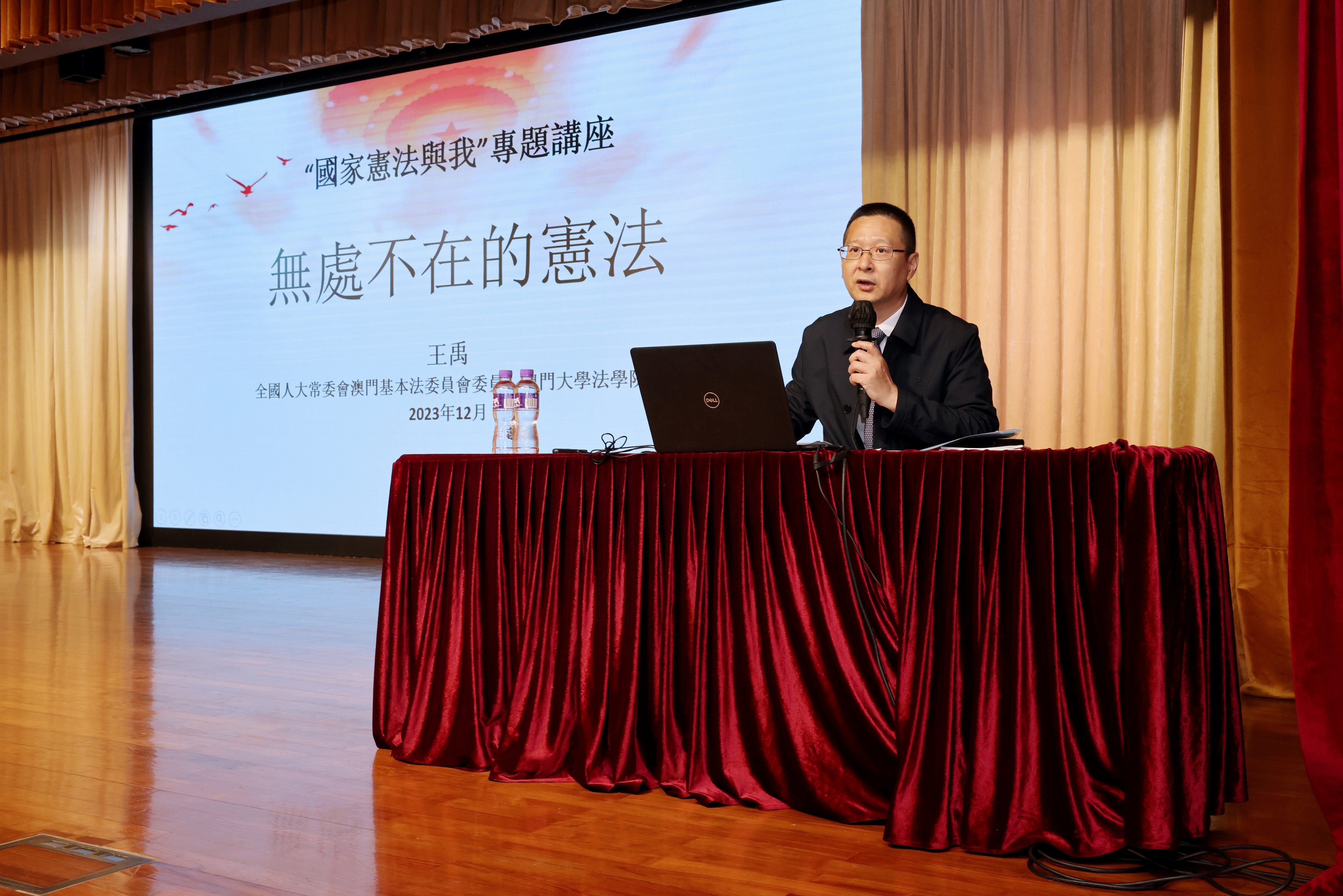 線下方面,法務局在今日起於本澳中學和高等院校舉辦「國家憲法與我」校園講座,當中邀請了全國人大常委會澳門基本法委員會委員、澳門大學法學院憲法與基本法研究中心副主任王禹教授擔任主講。