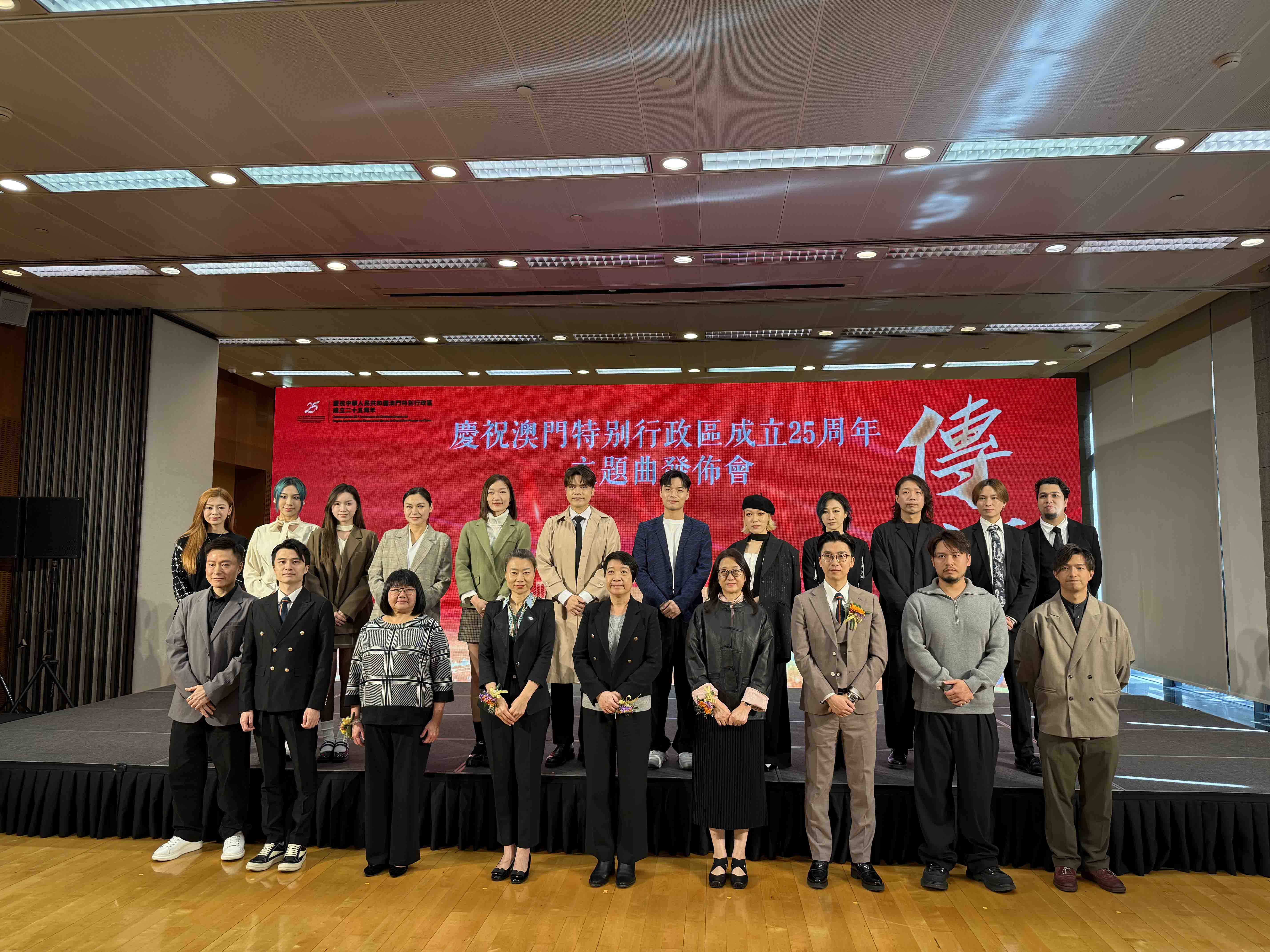 【即時新聞】文化局今日在澳門文化中心舉行慶祝中華人民共和國澳門特別行政區成立25周年主題曲《傳源》發佈會,以歌聲歡慶澳門特別行政區成立25周年。《傳源》由澳門音樂產業協會創作,潘君保作曲,龍世傑填詞,參與演唱的澳門歌手及樂隊組合包括:彭永琛、蘇耀光、龍世傑、歐陽日華、殷巧兒、林靜翬、陳倚俐、馬曼莉、ALL IN及Scamper。