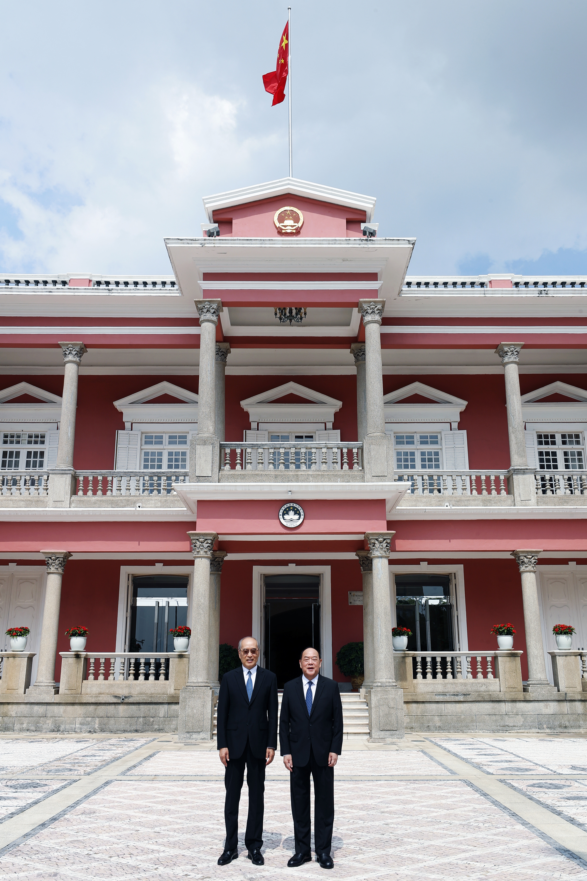 【特訊】行政長官賀一誠今日在政府總部與國家首席大法官、最高人民法院院長張軍會面,雙方就加強司法法律合作交流、共同為橫琴粵澳深度合作區建設提供更高水平的法治保障等議題交換意見。