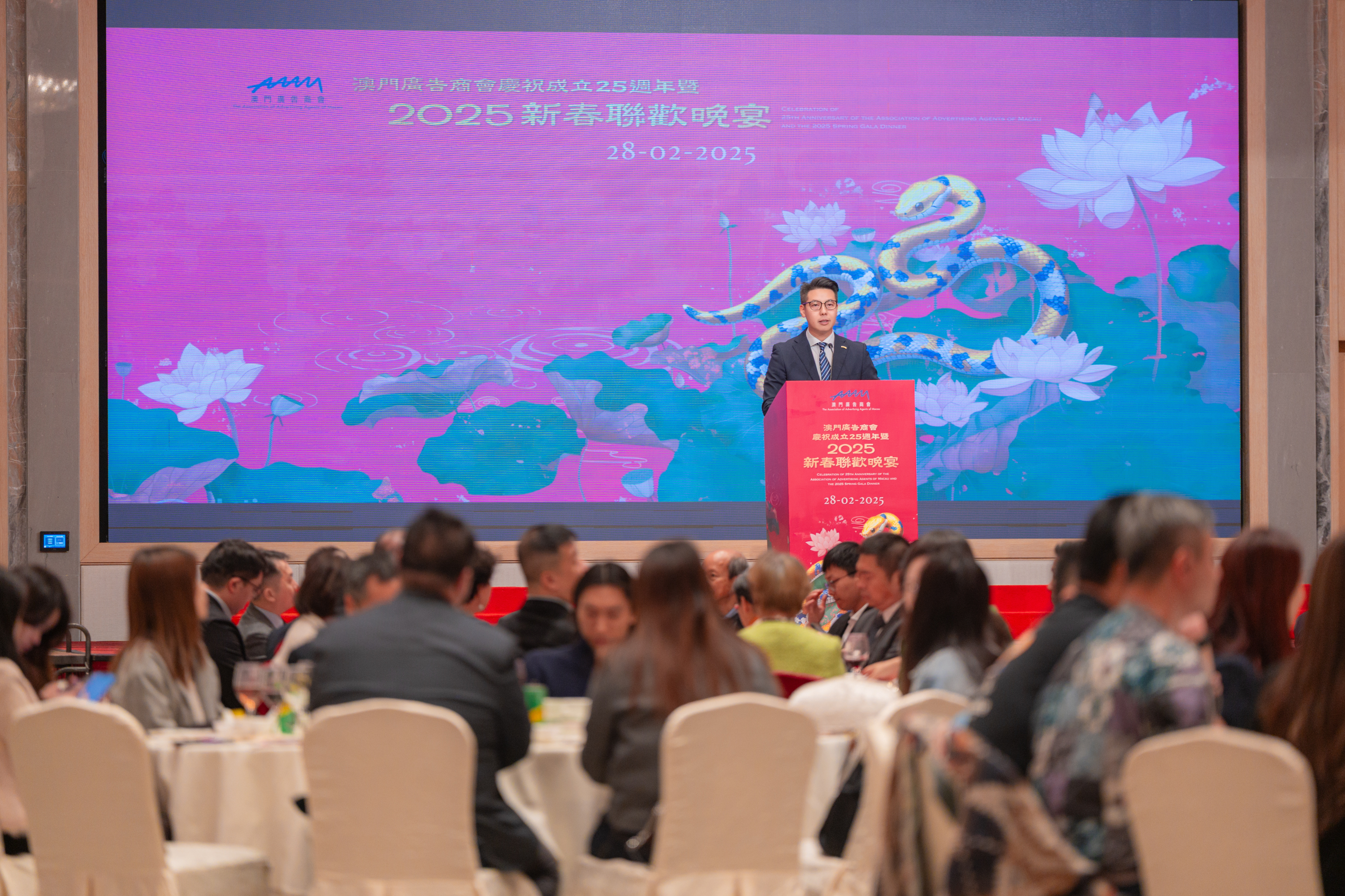 【特訊】澳門廣告商會假澳門漁人碼頭宴會廳隆重舉辦「慶祝成立25週年慶典暨2025新春聯歡晚宴」。活動邀請了澳門旅遊局文綺華局長、澳門立法會葉兆佳議員、澳門經濟及科技發展局牌照及稽查廳鄺信昌廳長、澳門市政署行政執照處梁卓洪處長、招商投資促進局活動推廣處梁承宇代經理、 澳門教育及青年發展局青年發展處趙寶威處長、澳門特別行政區文化發展基金行政委員會陳家耀委員、橫琴粵澳深度合作區經濟發展局投資促進處王靖副處長、橫琴粵澳深度合作區商事服務局綜合事務處蔡煌騰副處長、廣東省廣告協會陳鈿隆會長、香港廣告業聯會高麗娟主席等出席,共同見證澳門廣告商會25年來的輝煌歷程,並展望未來發展藍圖。