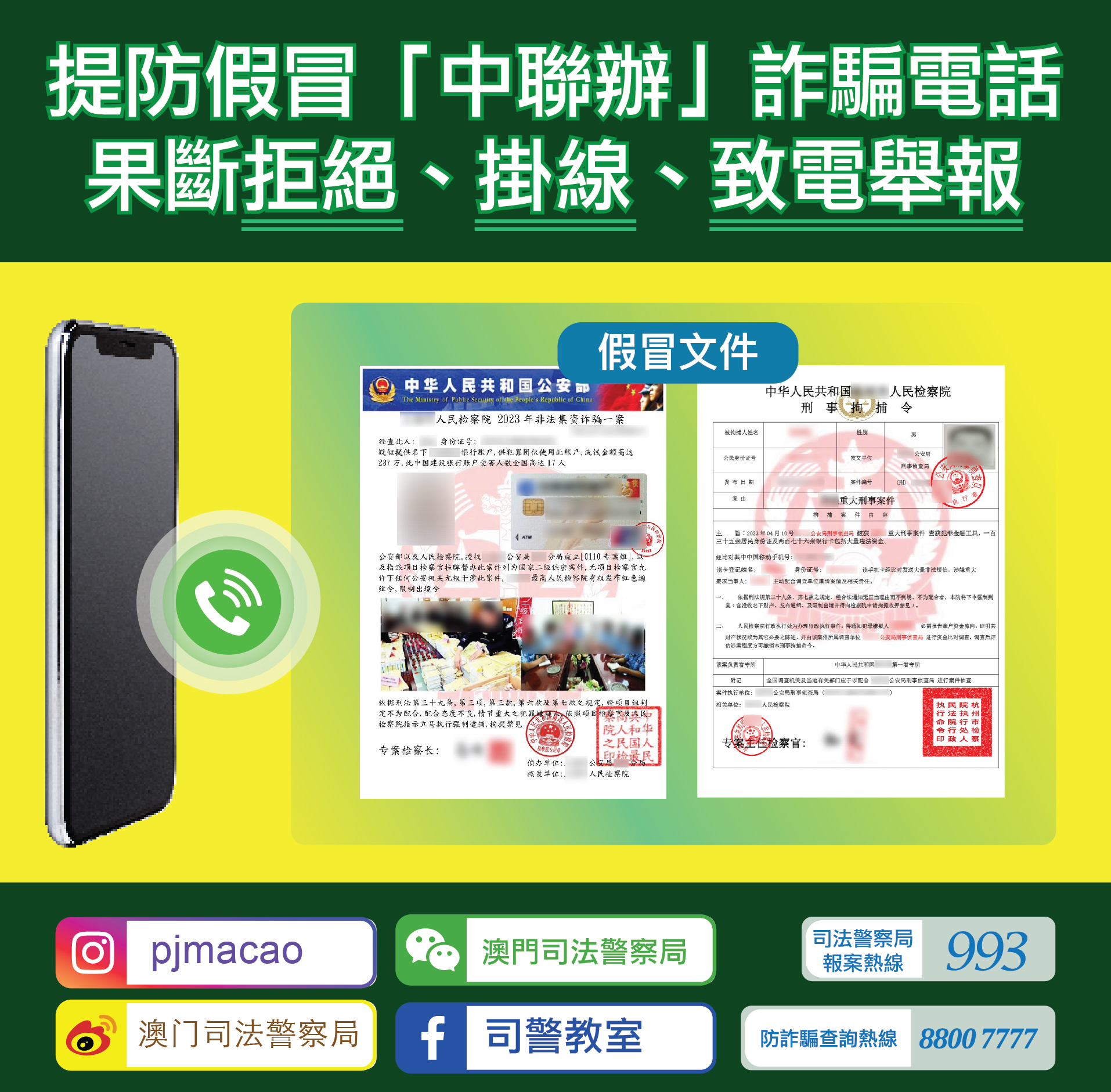 司警局反詐騙協調中心將繼續加強有關宣傳工作並再次呼籲市民,切勿輕信任何自稱國家機關之來電,若對方要求提供銀行帳戶資料,應果斷拒絕並立即掛線;如接獲任何懷疑詐騙電話,請主動致電司警局防詐騙查詢熱線8800 7777 或報案熱線993 求助。