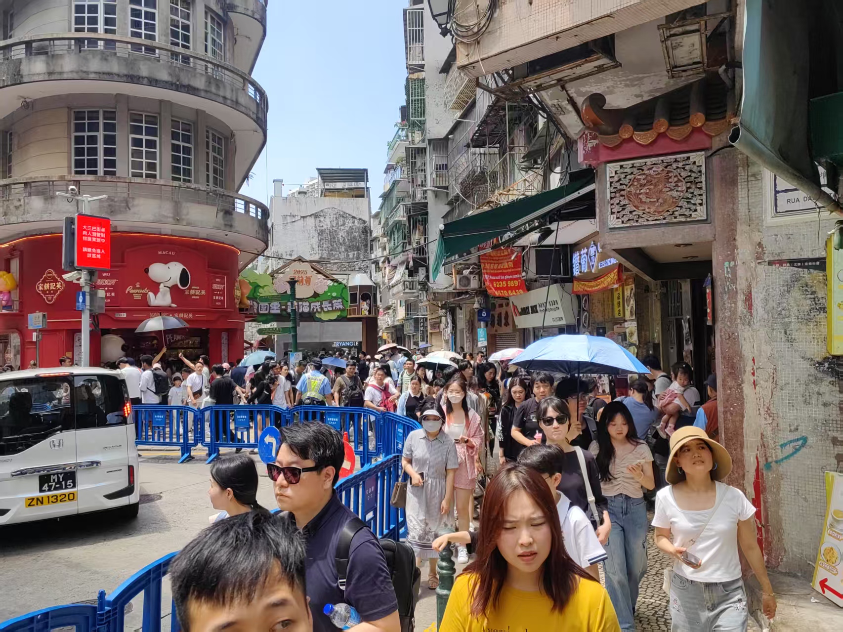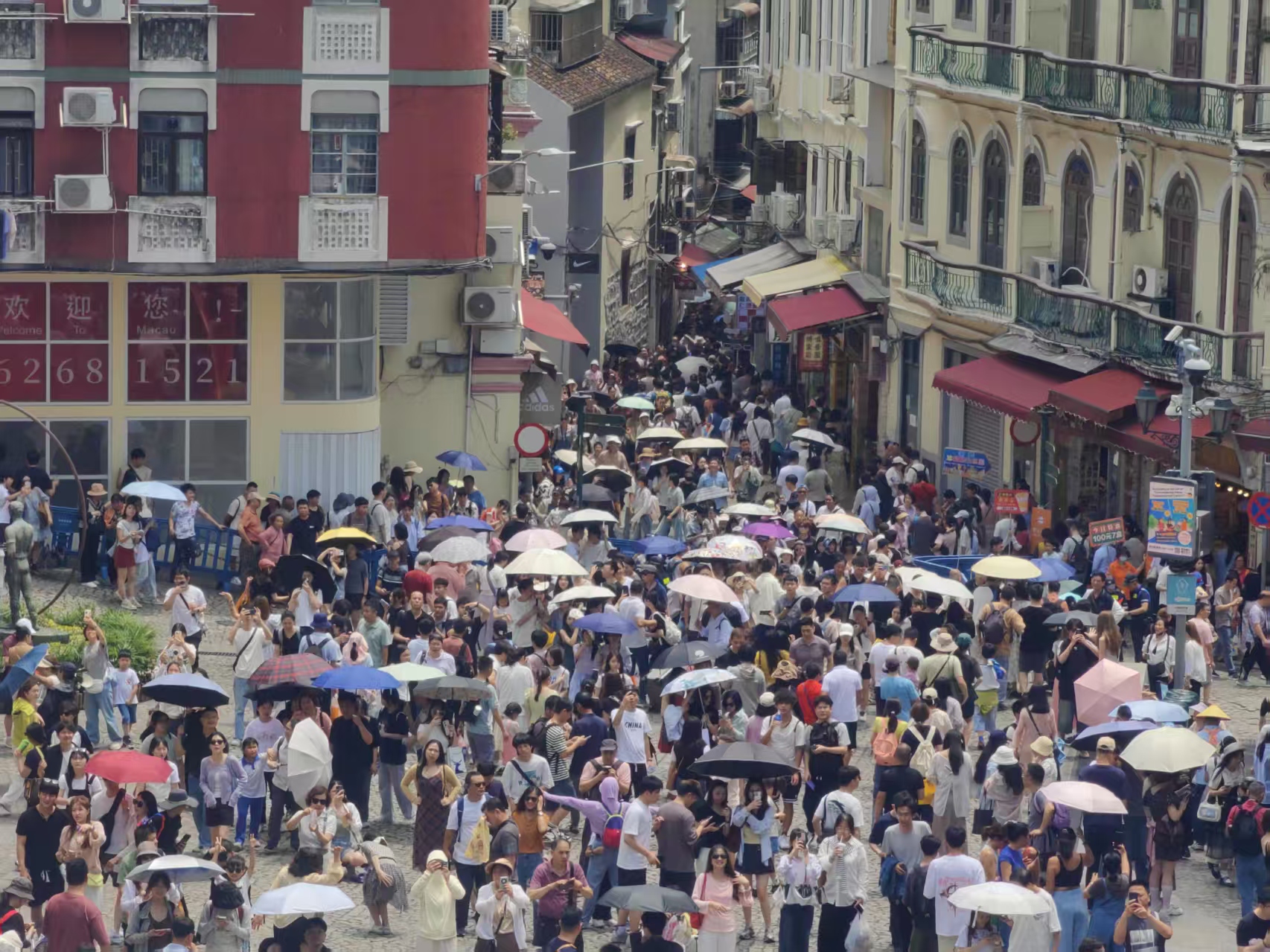 【即時新聞】內地五一黃金週假期,大批旅客來澳旅遊,作為澳門地標性建築的大三巴牌坊更人頭湧湧,人氣“爆棚”。