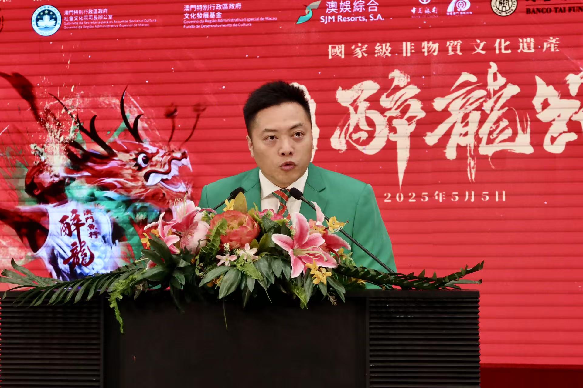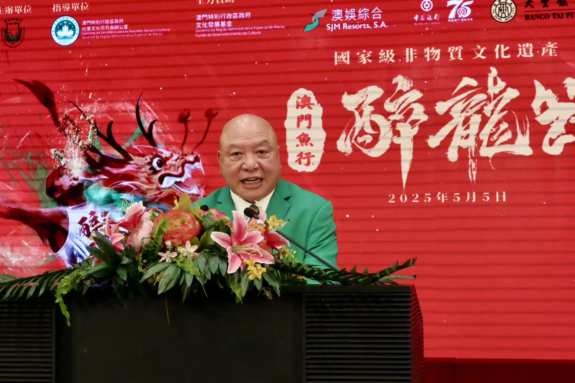 理事長蘇國夫致謝詞稱,魚行醉龍節不僅是澳門漁業同行的傳統節慶,更是澳門重要的文化瑰寶。作為行業代表,該會將一如既往秉持服務業界的宗旨,加強與政府各部門的合作,優化醉龍館,為明年慶典做好準備,特別是繼續深化與本澳教育機構及灣區的非遺文化交流,讓這項珍貴的文化遺產薪火相傳,發揚光大。
