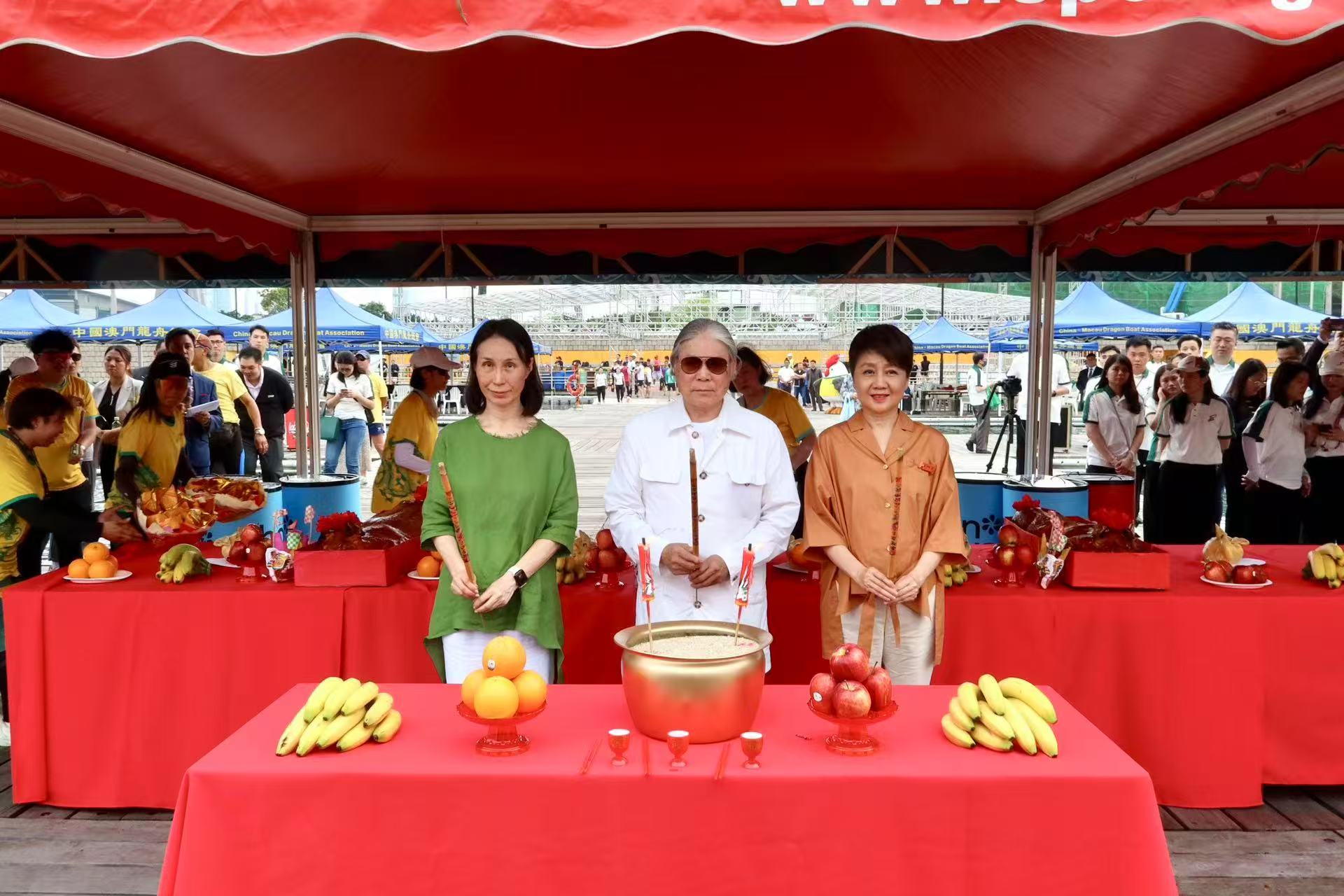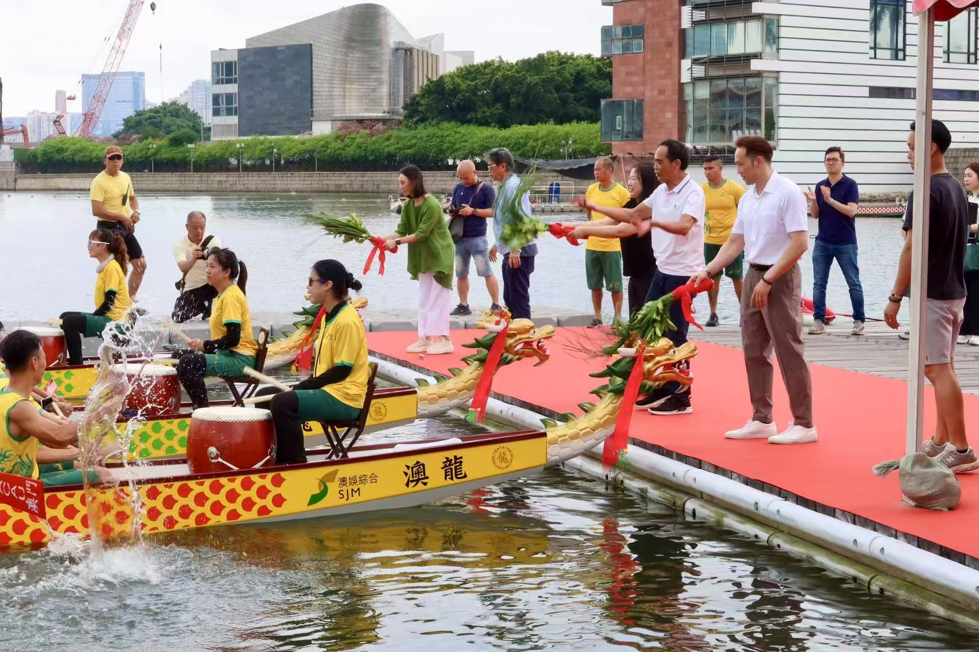 「新龍舟下水儀式」於下午三時半舉行,體育局代副局長李詩靈、澳娛綜合度假股份有限公司常務董事何超鳳、中國澳門龍舟總會理事長黃家豪出席,為14艘新龍舟主持寓意吉祥平安的祈福儀式。隨後於四時半進行「澳娛綜合龍舟隊伍下水禮」,澳娛綜合董事及管理層到場,為即將參賽的龍舟隊祈福及打氣,並祝願旗開得勝。