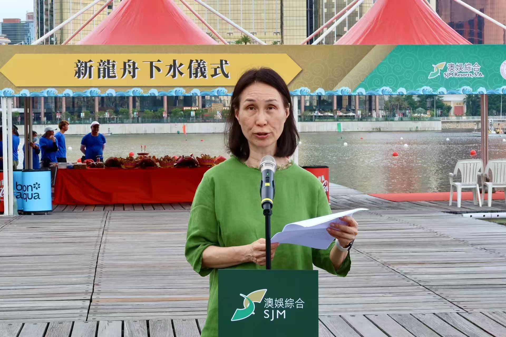 何超鳳致詞表示,在中華文化中,龍舟不僅是端午節的重要象徵,更承載著祈福、延續傳統文化與凝聚社區的深厚意義。澳娛綜合與龍舟運動淵源深厚,多年來積極參與及支持相關賽事,亦經常組織員工培訓及參賽,推動這項傳統運動在社區落地生根。今年特別為中國澳門龍舟總會置入14艘全新龍舟,正是希望為賽事注入新動力,同時進一步推廣龍舟文化,讓這份承載歷史的運動在年輕一代中繼續綻放光彩。