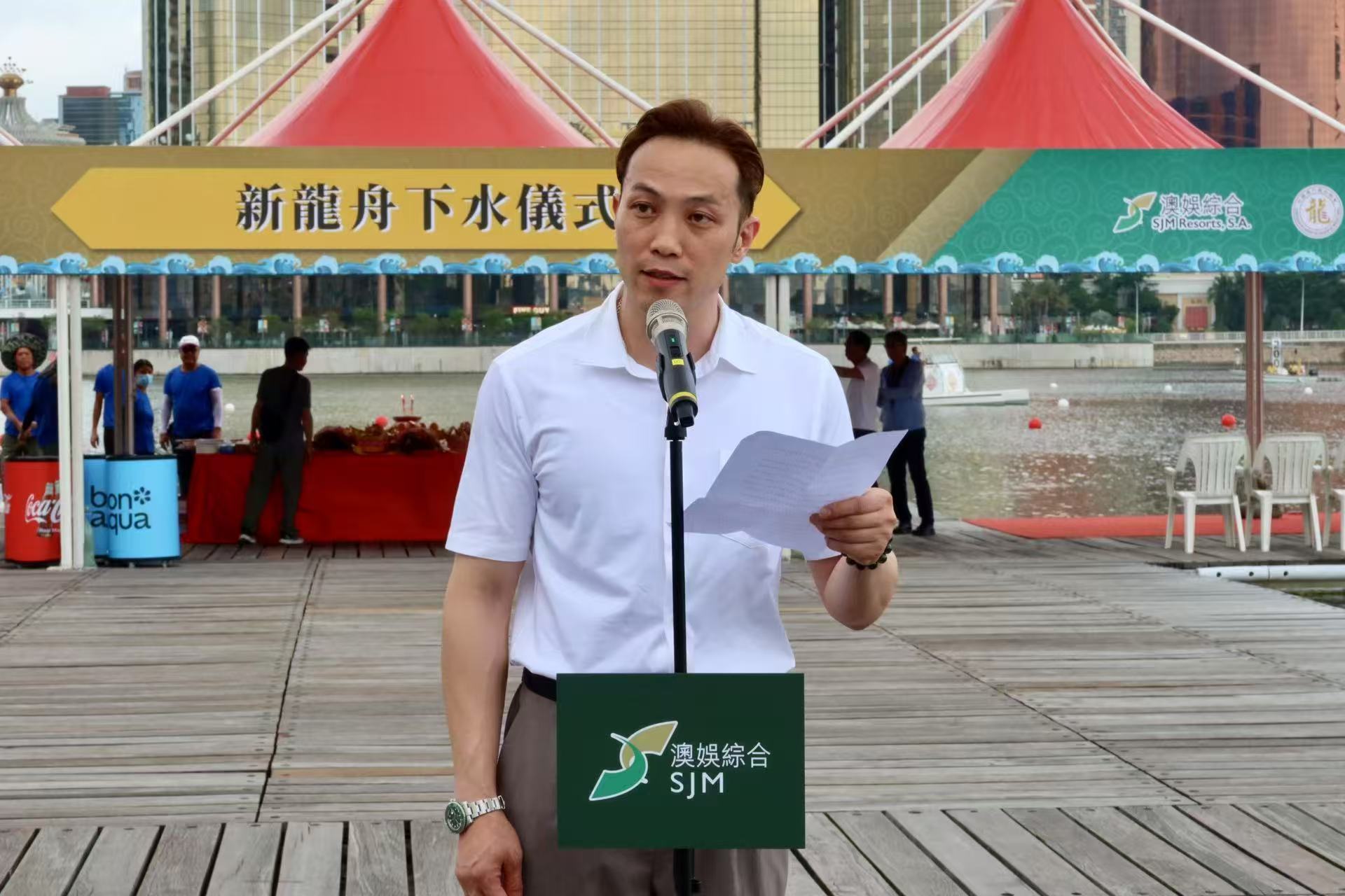 黃家豪致詞指,澳娛綜合置入14艘全新龍舟相信將助力龍舟賽舉行,亦為未來推動澳門龍舟運動發展打下堅實基礎。此外,澳娛綜合也為本地龍舟賽事注入力量,在原有訓練時間基礎上,支持延長訓練時間,使本地參賽者和運動員得到更充分的訓練保障,對本地賽事及本澳龍舟運動水平的提高有著正面的支撐作用,更為本地賽事規模和安排走向更專業化發展。