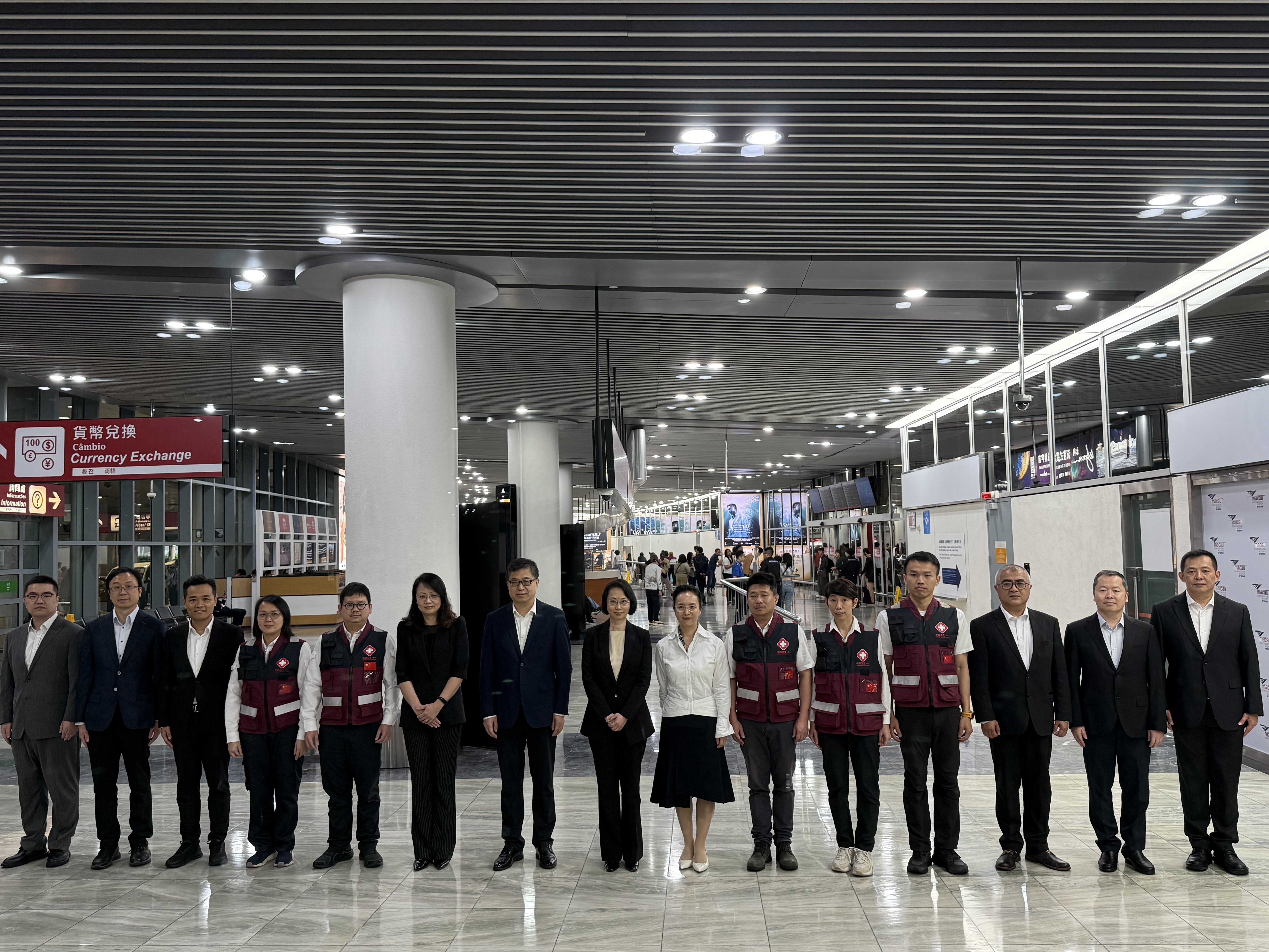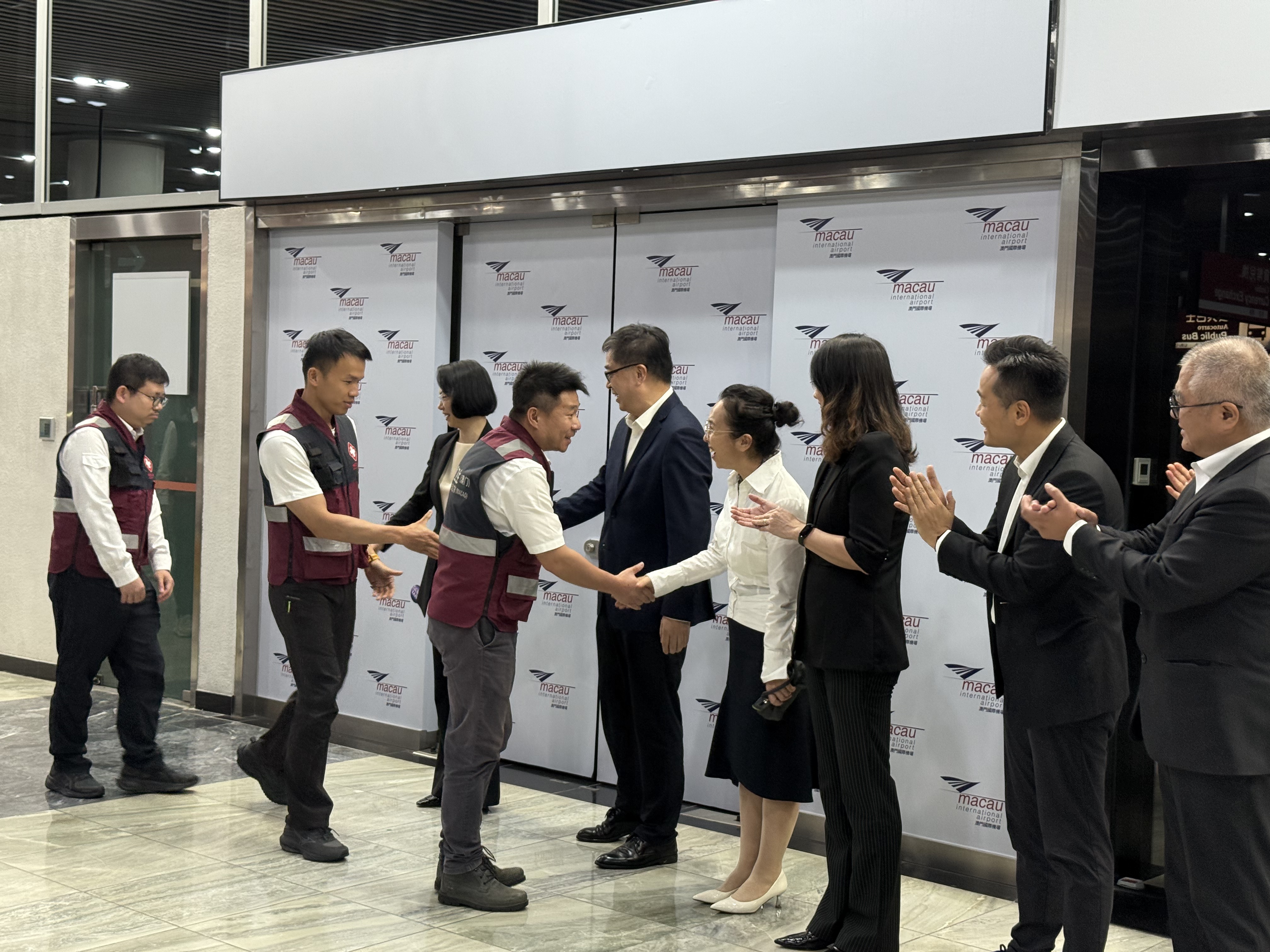 【即時新聞】中國國際應急醫療隊(澳門)完成緬甸災後應急醫療工作後,於今日下午約三時半抵達澳門機場,社會文化司司長柯嵐、中聯辦宣文部部長萬速成、外交部駐澳特派員公署政策研究室參贊馬乃芳、社會文化司司長辦公室主任林媛、衛生局局長羅奕龍等到場迎接隊員,並向他們逐一握手致意。