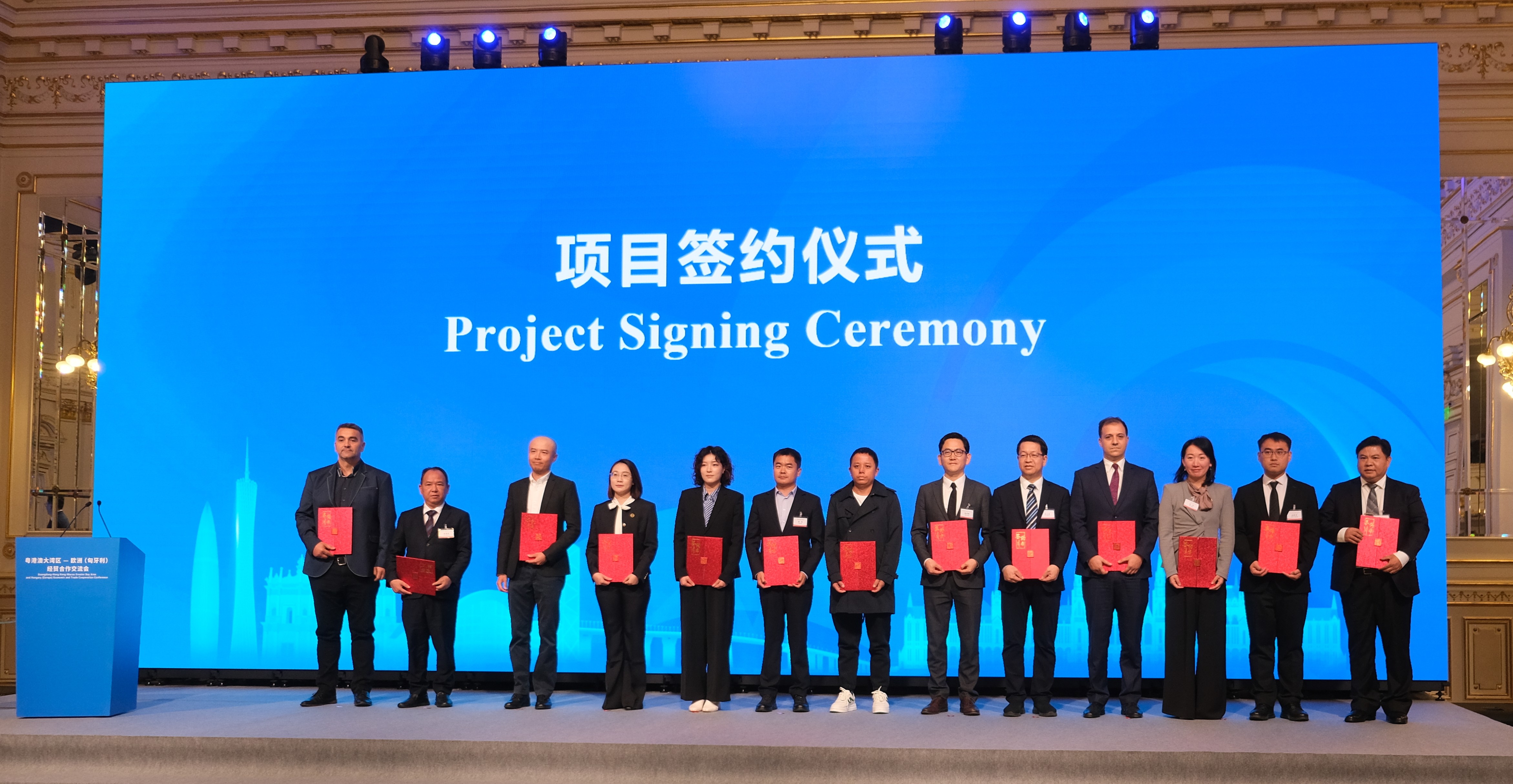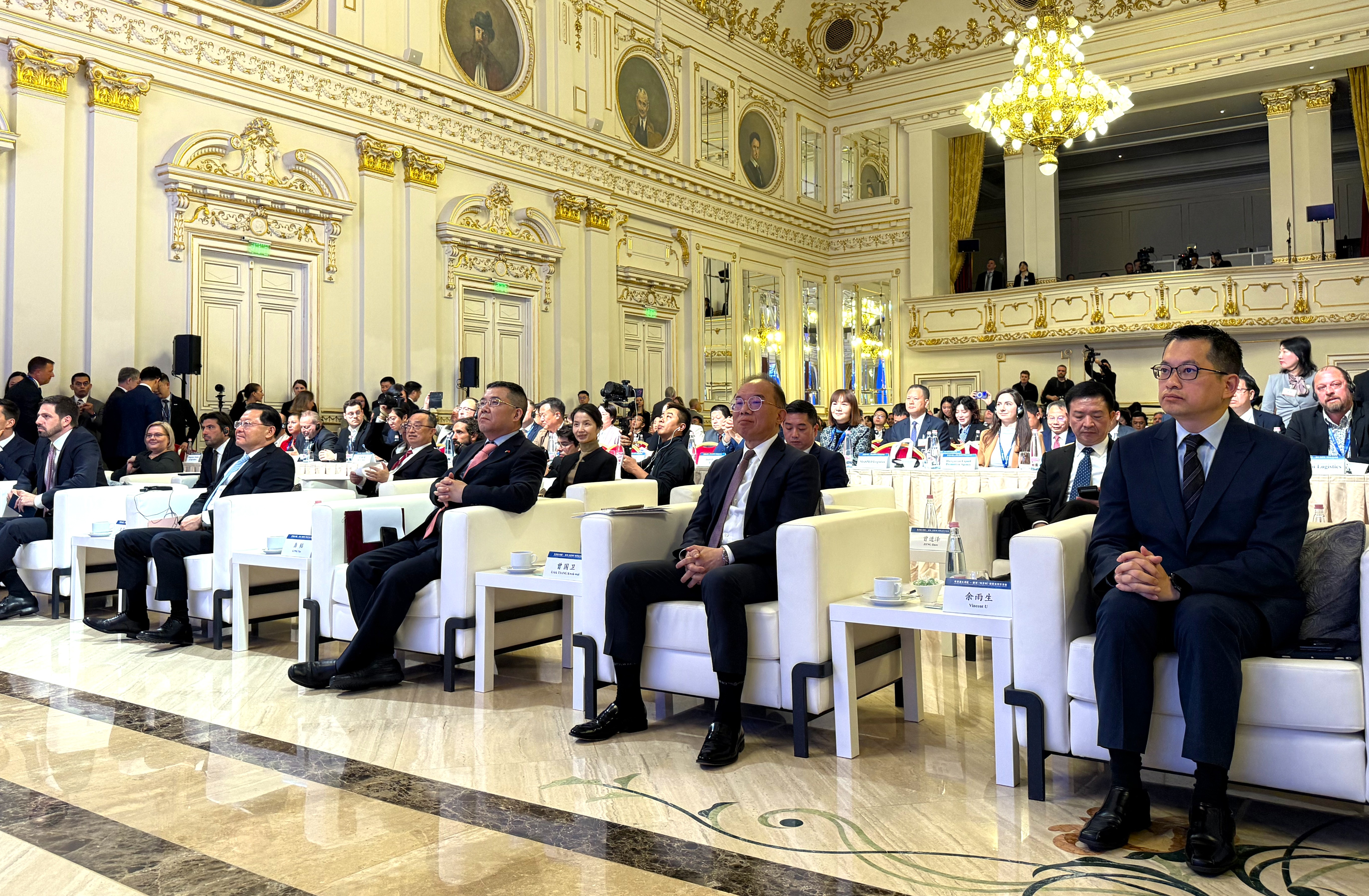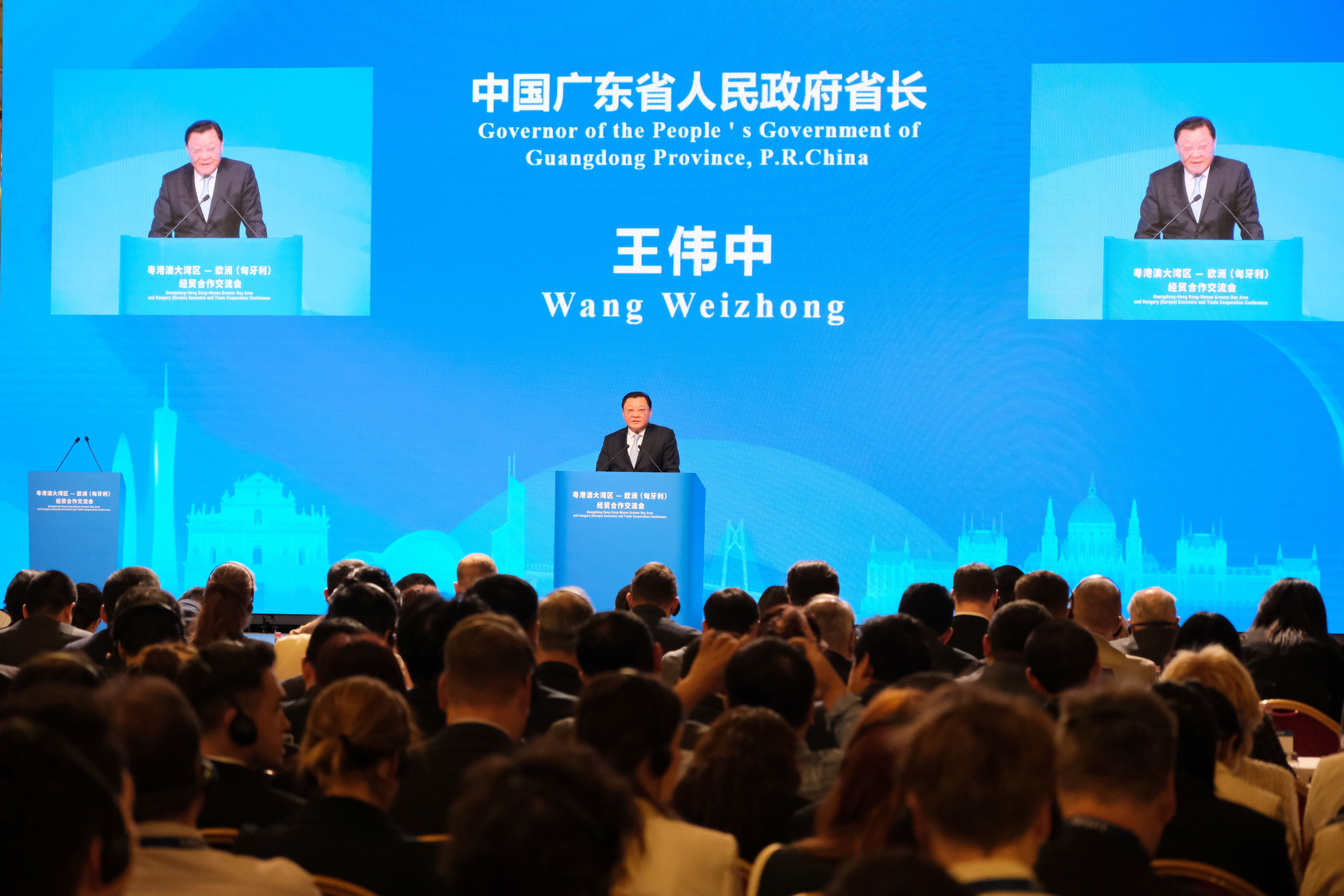 是次交流會由廣東省人民政府、香港特別行政區政府、澳門特別行政區政府聯合主辦,來自匈牙利等歐洲國家政商界高層代表,以及專程赴歐的大灣區代表們,超過300位參會嘉賓共同交流。