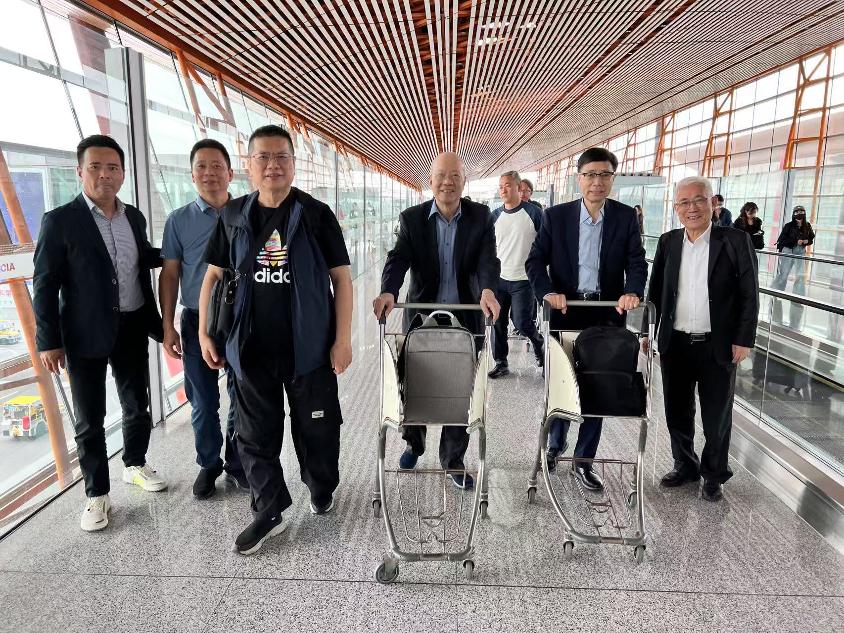 考察團今日上午從澳門機場出發,抵達北京後即前往長城美術館參觀展覽場地。值得一提的是,交流團一行在飛赴北京途中偶遇中聯辦宣傳文化部部長萬速成,雙方親切合照留念,萬速成部長並預祝展覽取得圓滿成功。