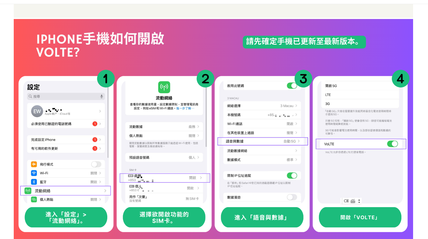 郵電局昨日發新聞稿指,為配合3G服務於2025年6月5日起退場,各營運商致力協助相關用戶轉用4G/5G服務,轉換過程有序進行。然而,郵電局關注到有個別營運商的少數用戶因未有適時更換設備或手機未啟用VoLTE功能而出現通話功能異常的情況。為此,郵電局已要求相關營運商加強門市客服支援,如用戶在使用流動電信服務時遇上問題,請聯絡所屬營運商尋求協助。