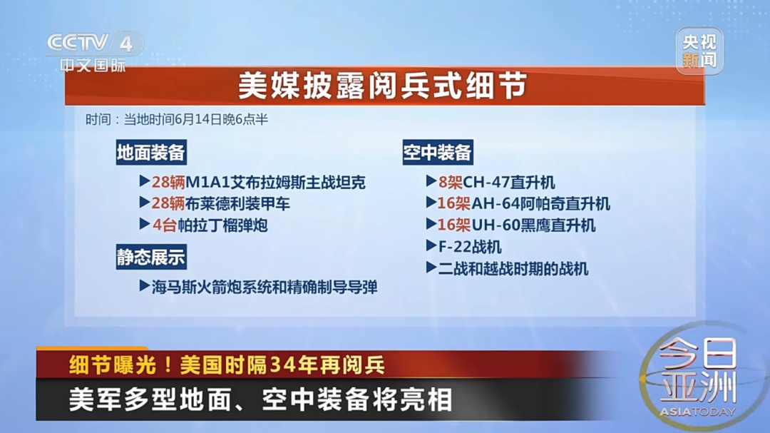 據此前報導,美國《新聞週刊》稱,抗議組織計劃在6月14日閱兵式當天舉行全國性抗議活動,抗議美國政府政策。
