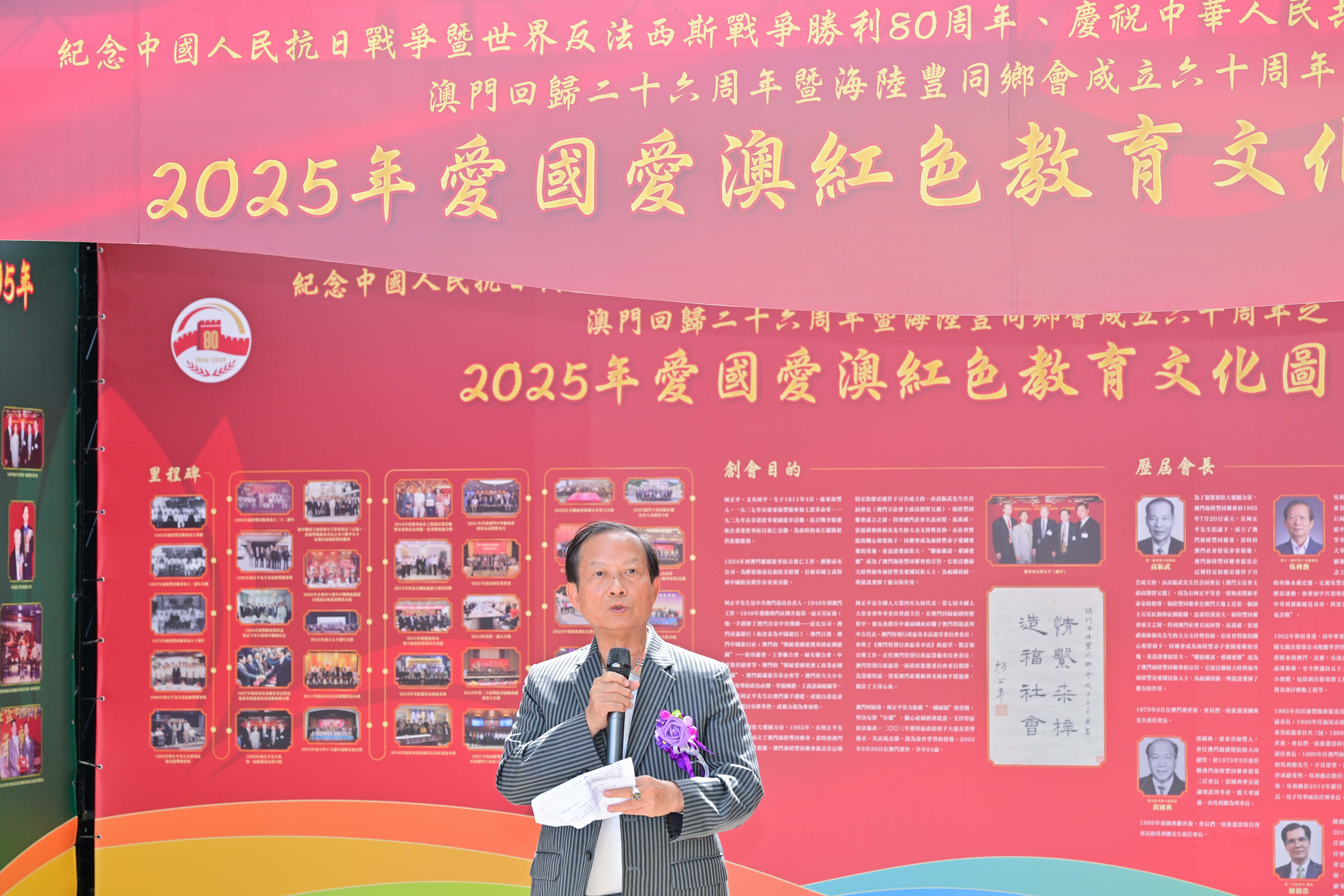【即時新聞】海陸豐同鄉會主辦紀念中國人民抗日戰爭暨世界反法西斯戰爭勝利80周年、慶祝中華人民共和國成立七十六周年、澳門回歸二十六周年暨海陸豐同鄉會成立六十周年「2025年愛國愛澳紅色教育文化圖片展」假路環市區馬忌士前地開幕,展示汕尾市一系列紅色文化圖片及該會創會歷程照片,展期至7月2日,期望藉此弘揚和傳承汕尾偉人的愛國主義精神,增強澳門青少年對國家的歸屬感和自豪感。