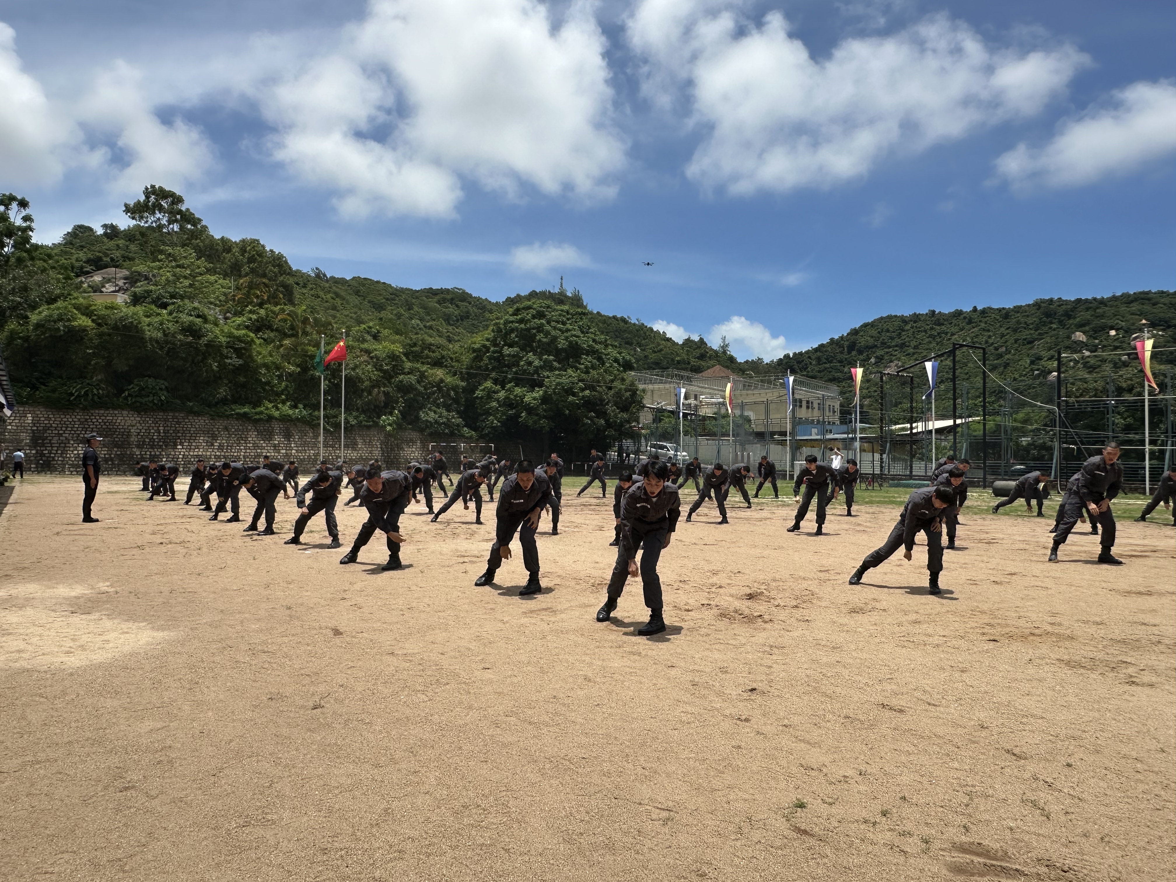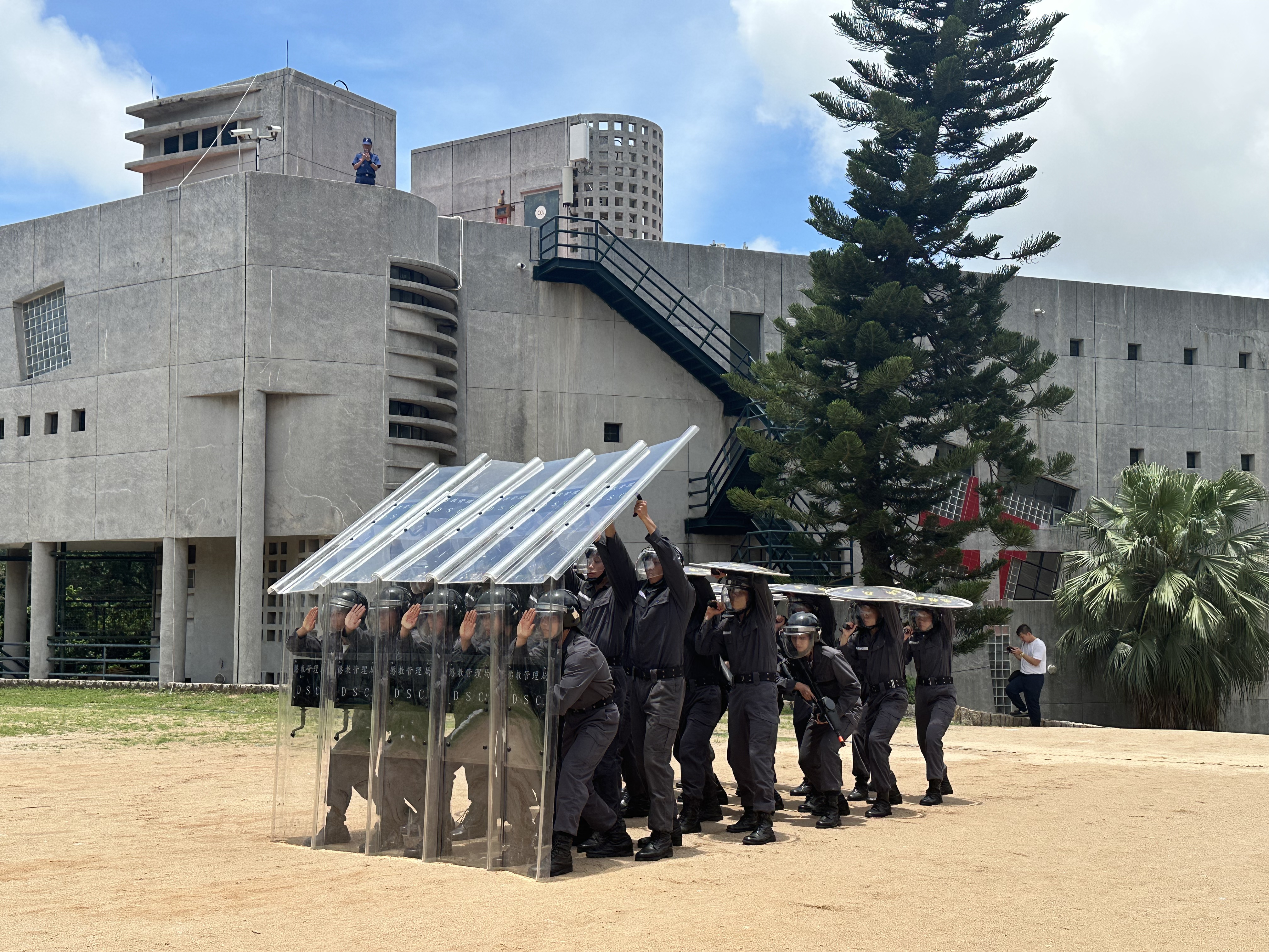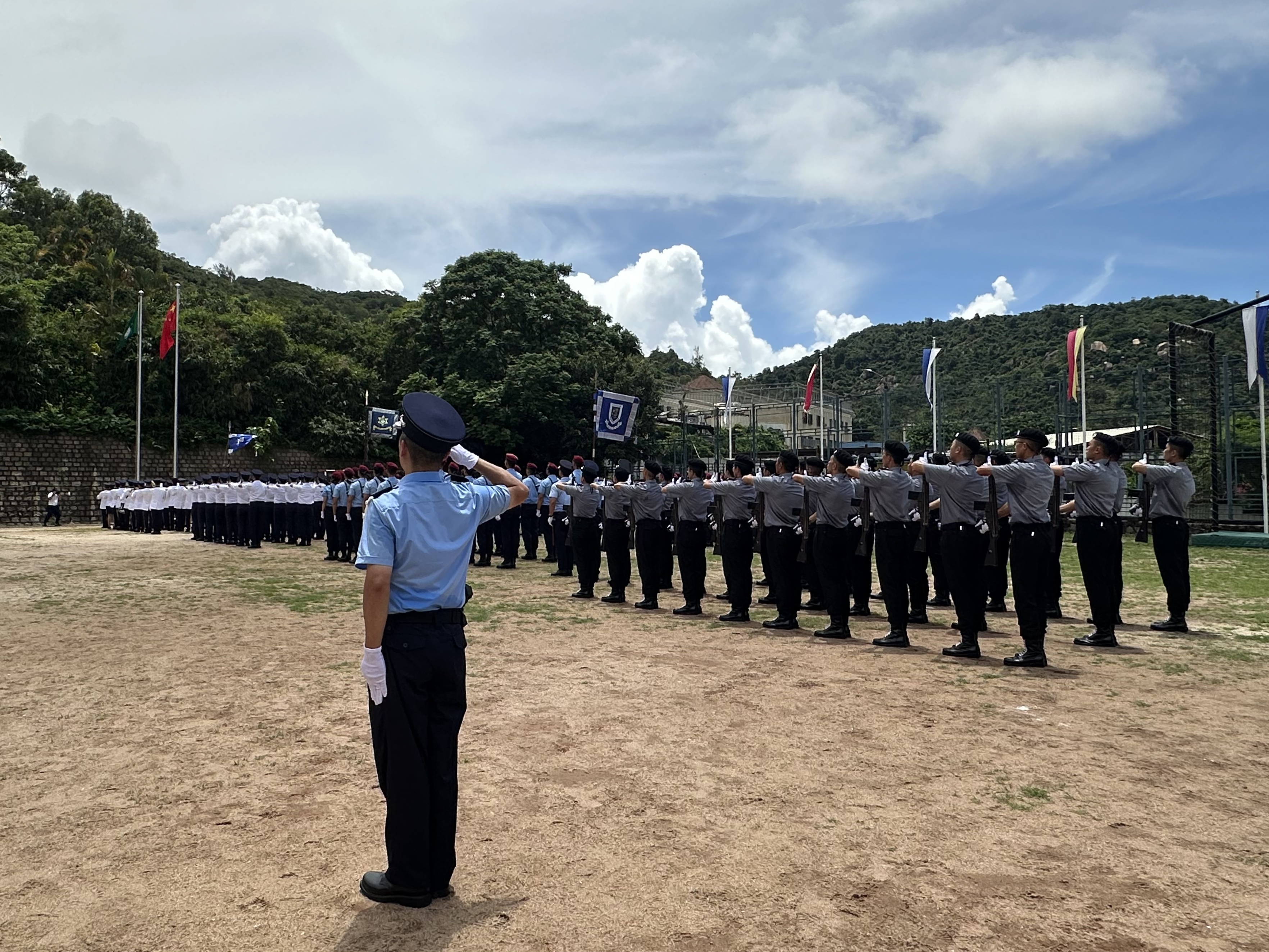 頒獎儀式後,在警察樂隊慷慨激昂的樂聲中,畢業學員踏着鏗鏘整齊的步伐行進,向保安司司長及嘉賓們致敬。虛構畢業學員以高效靈活的防暴戰術和警體訓練演示呈現培訓成果,體現獄警人員的專業戰術和團隊協作精神,以及剛強勇毅的一面。