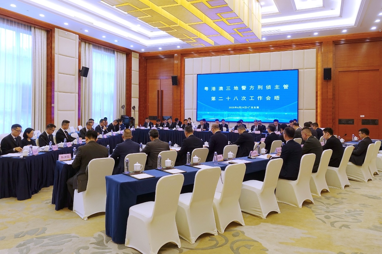 【即時新聞】“粵港澳三地警方刑偵主管第二十八次工作會晤”於本年6月24日在廣東東莞舉行,澳門警察總局局長梁文昌率領澳門警方代表團,與廣東省公安廳副廳長梁瑞國及香港警務處副處長葉雲龍分別率領的粵港警方代表團舉行工作會晤,中央人民政府駐香港聯絡辦公室警務聯絡部副處長徐華和中央人民政府駐澳門聯絡辦公室警務聯絡部副處長許咏昶等特邀列席會議。