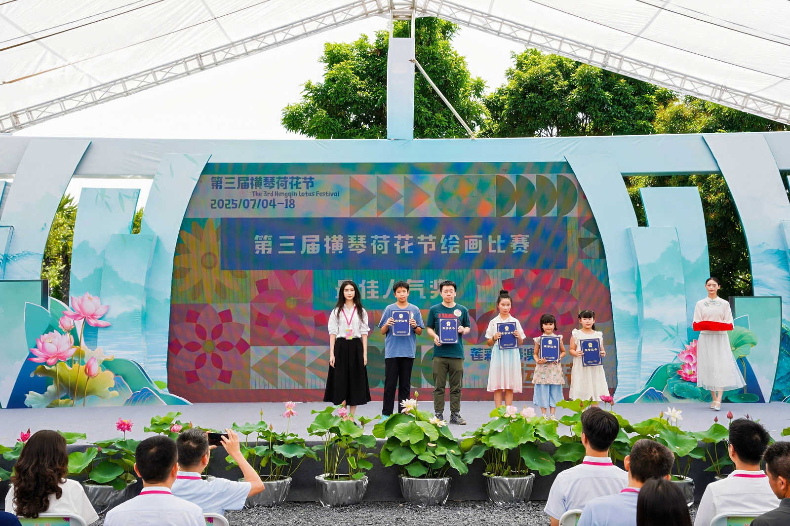 開幕禮上,並舉行「蓮彩聚琴澳好運蓮蓮」繪畫比賽頒獎儀式,珠海歌舞團帶來的舞蹈作品《琴澳合蓮》,以清新優雅的舞姿、靈動的舞蹈語彙,譜寫琴澳兩地從地理合作到文化共情的昇華;澳門青年歌手歐陽日華深情獻唱澳門回歸20周年主題曲《蓮成一家》,抒發澳門回歸後與祖國連成一家、家國同喜的團圓和諧之情。琴澳兩地連袂呈現的精彩文藝演出,緊扣荷花節「好運蓮蓮」主題,通過藝術的表達,傳遞出琴澳攜手同行、共創美好未來的積極寓意,為深化琴澳文化協同發展,推進琴澳一體化進程注入了新的活力。