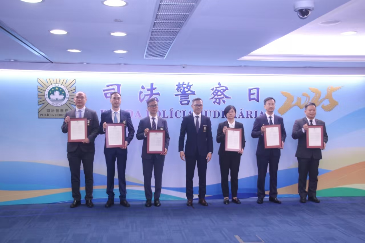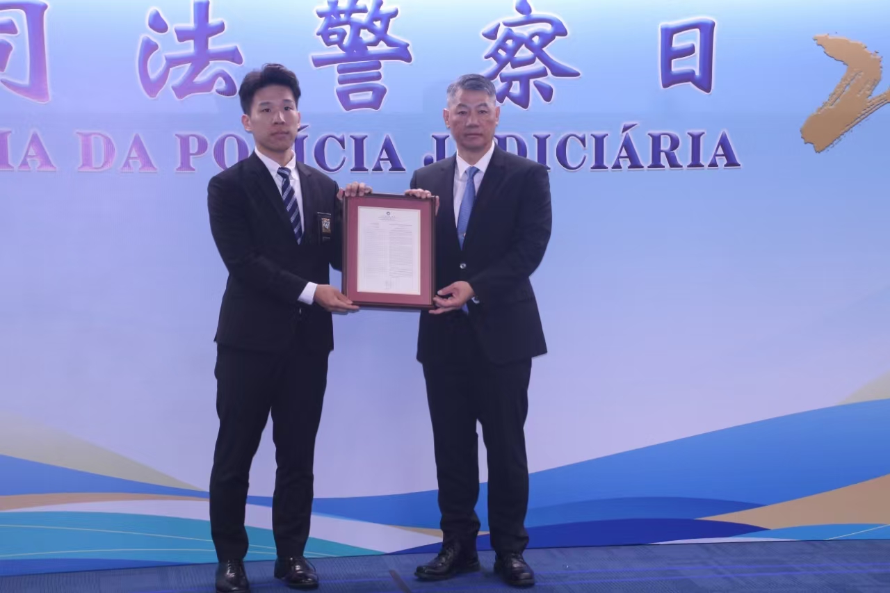 【即時新聞】司法警察局上午假司警局總部舉行一年一度的司法警察日頒獎禮,公開嘉獎傑出人員及團隊。今年共有14名司警局人員獲得卓越功績獎,其中4人依法獲豁免公佈身份,另外有113位人員頒發個人嘉獎,8個工作團隊、10個偵查集體,以及參與澳門回歸祖國25周年慶典及中葡論壇第六屆部長級會議重大安保工作、2025年“全民國家安全教育展”相關工作的團隊頒發集體嘉獎。薛仲明勉勵獲奬人員及團隊繼續秉持執法為民的司警精神,以實際行動實踐使命。