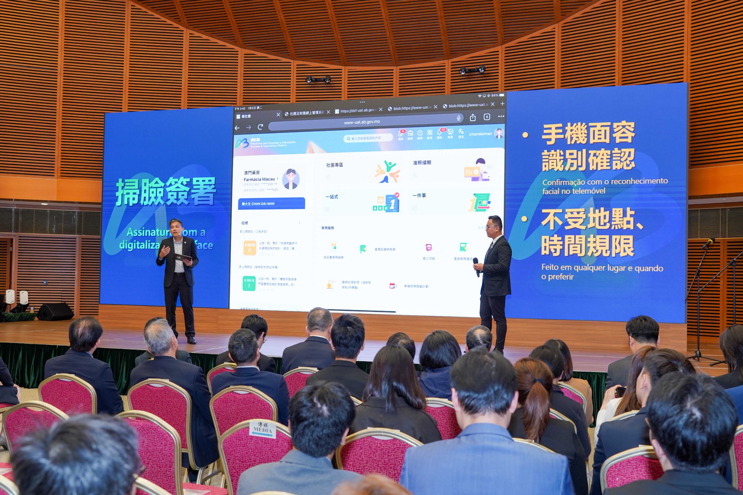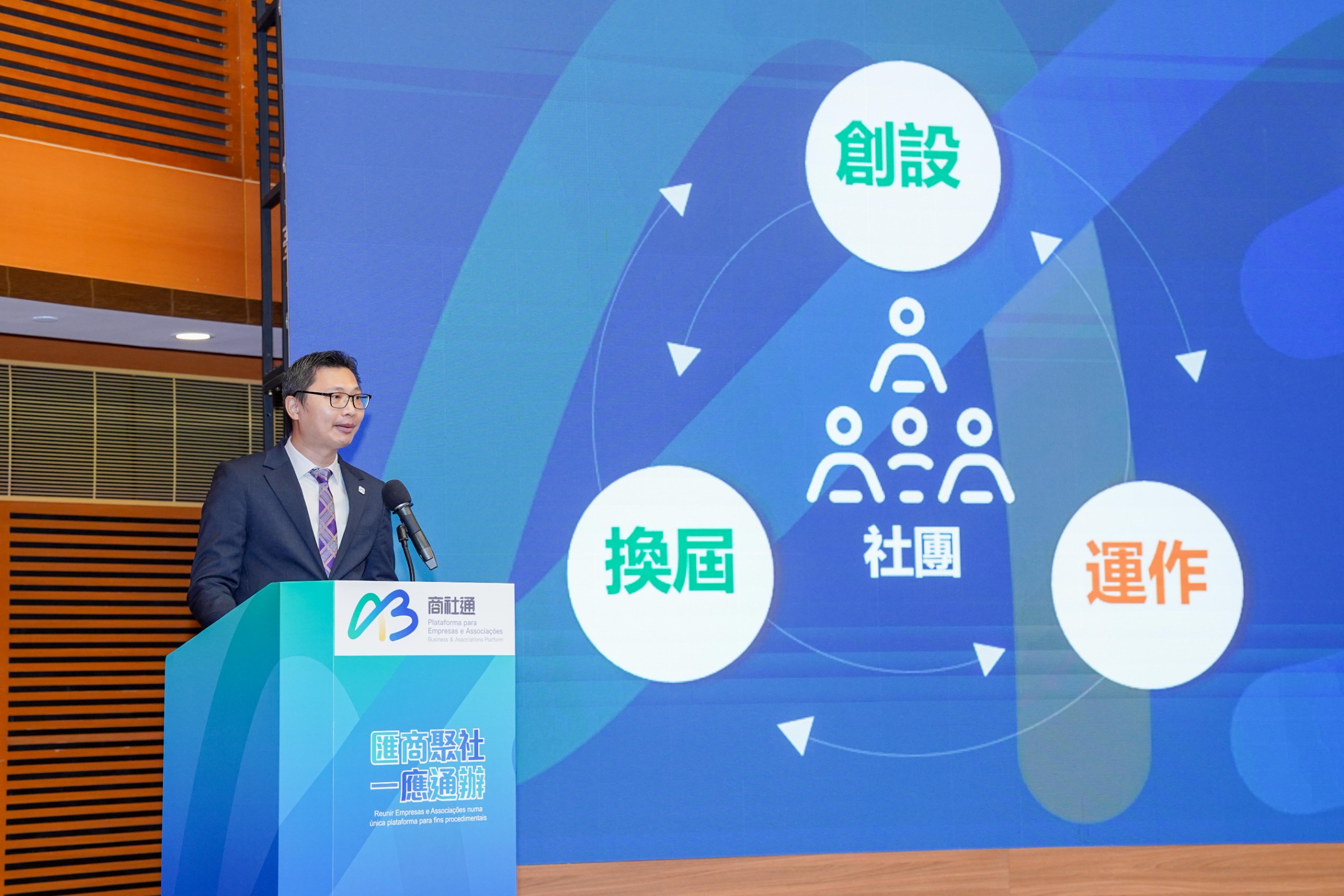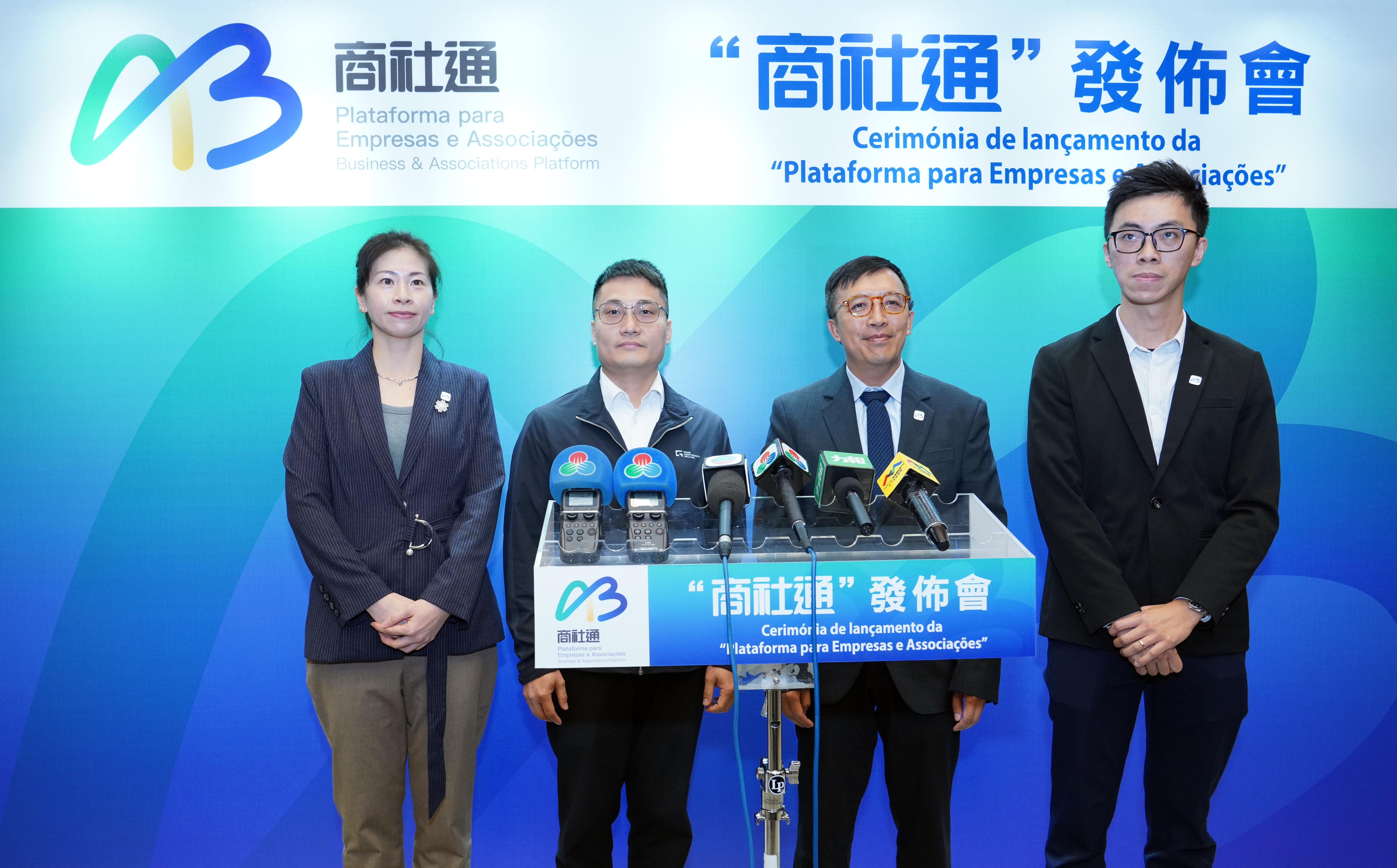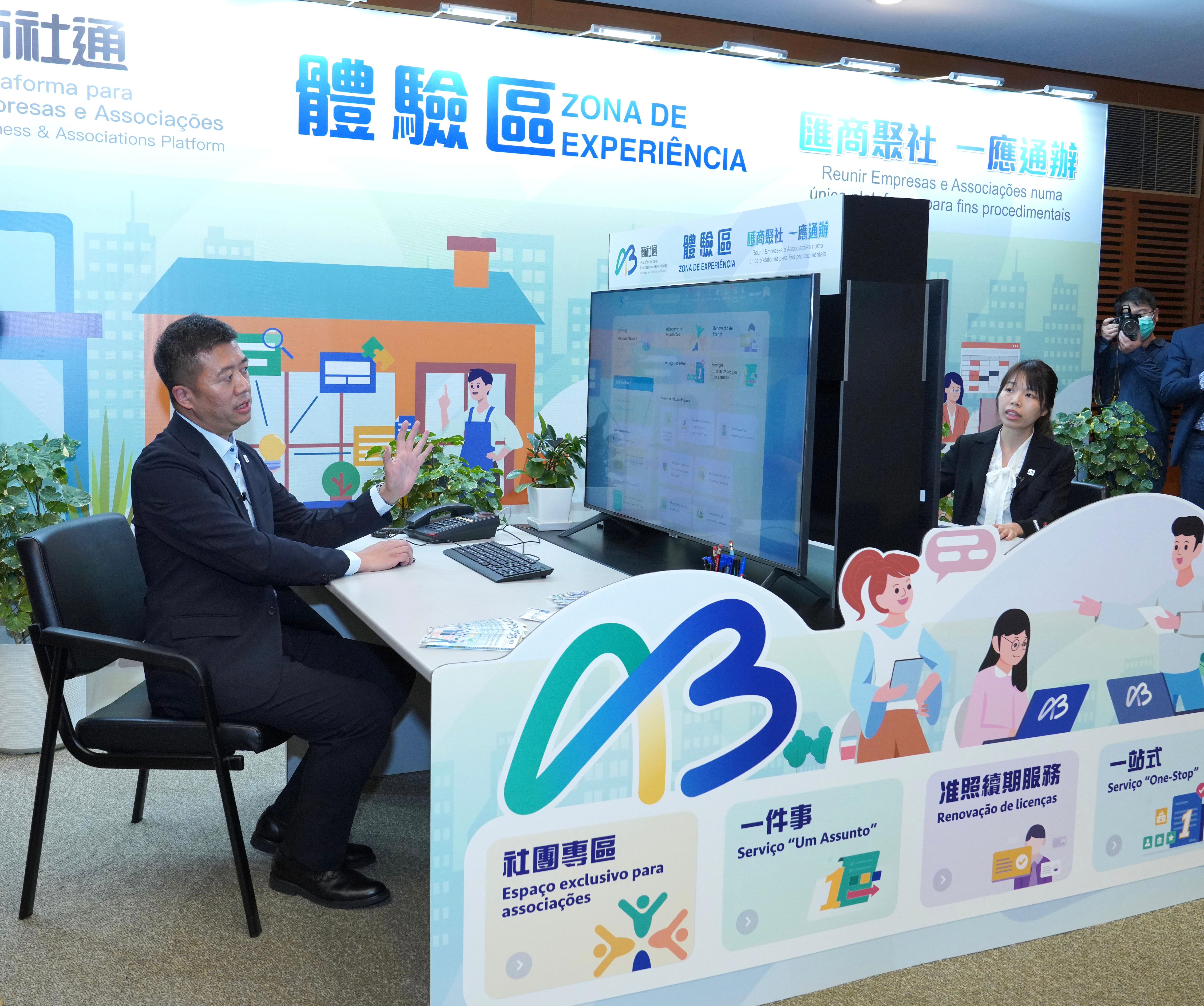身份證明局局長周偉迎就「商社通」的社團專區業務功能作出介紹,他表示目前澳門有超過一萬個註冊社團,社團在澳門社會中發揮重要作用。為便利社團運作,「商社通」特設「社團專區」,將多項與社團相關的服務集中整合,包括社團架構成員的管理和查閱、申請及領取各種證明書,以及部分社團資助申請、政府場地租借和活動報名等,各項服務均可全程網辦。周局長並表示,日後將增加更多社團運作流程所需用到的服務,以及增加更多資助項目的電子申請。