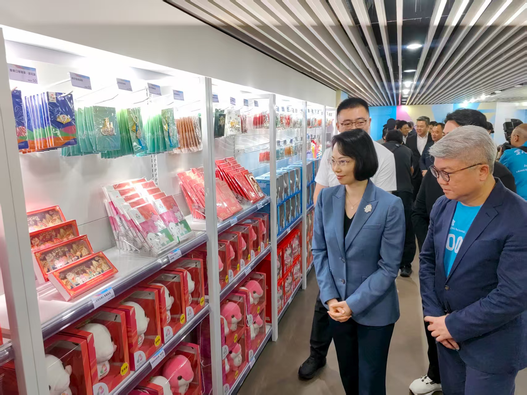 儀式後,在潘永權及呂梁陪同下,柯嵐與一眾嘉賓參觀特許商品零售店。