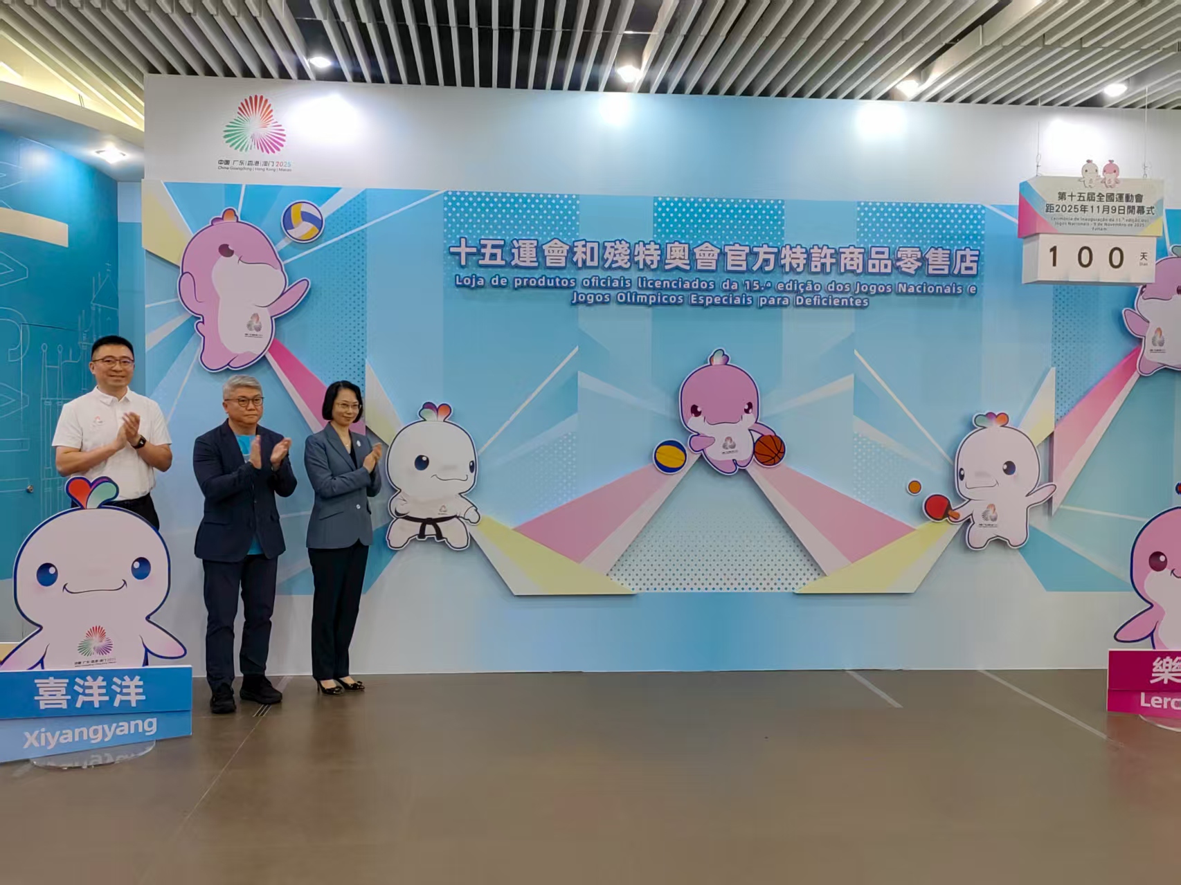 【即時新聞】今日距離11月19日第十五屆全國運動會開幕還有一百天,位於塔石體育館展覽廳的十五運會和殘特奧會澳門賽區官方特許商品零售店今日投運,店內集特許商品銷售、體育文化推廣和拍照打卡體驗於一身,為市民和旅客打造便捷易達的互動空間。十五運會及殘特奧會澳門賽區籌備辦公室主任潘永權表示,特許商品零售店和自助售賣機將陸續擴展至全澳更多地點,方便市民和旅客買到心儀的全運紀念品,擴大全運會的精彩效應。