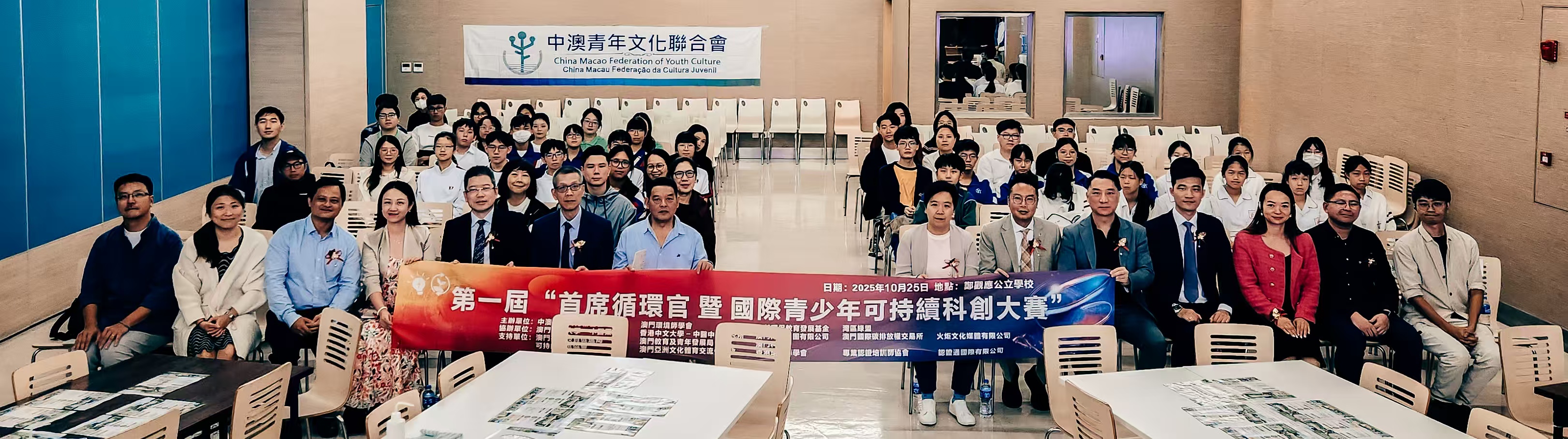 【即時新聞】由中澳青年文化聯合會、澳門環境師學會、弘毅環保教育發展基金及灣區綠盟聯合主辦的第一屆「首席循環官」活動及「國際青少年可持續科創大賽」啟動儀式今(25〉日在澳門舉行。活動以「共赴新生,智競未來」為口號,吸引來自十多所學校的師生踴躍參與,共同聚焦可持續發展與科技創新。