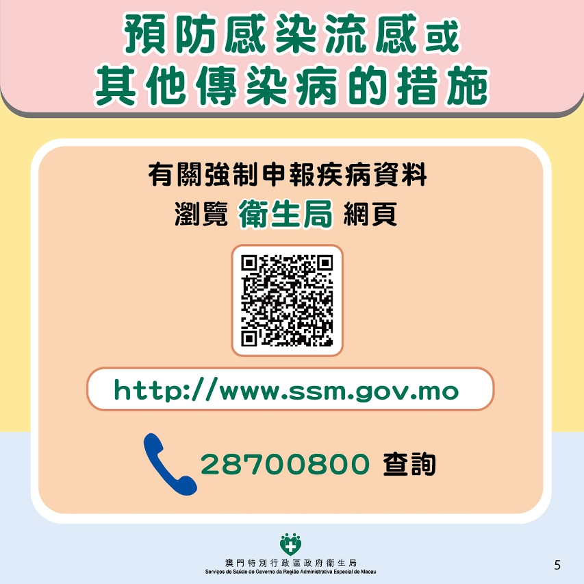 【即時新聞】為持續監測傳染病在澳門的流行趨勢並制定適切的防控措施,衛生局根據《傳染病防治法》及《傳染病強制申報機制》規定,要求公共或私人醫療機構的負責人、首次診斷醫生、填寫死亡證明書的醫生,以及實驗室診斷技術人員,在法定時間內向衛生局申報傳染病個案。目前,澳門共有45類疾病需強制申報。衛生局定期對申報數據進行分析與評估,並透過公佈監測數據,讓公眾了解傳染病的發展趨勢,提升疾病預防意識,做好自我健康管理。
