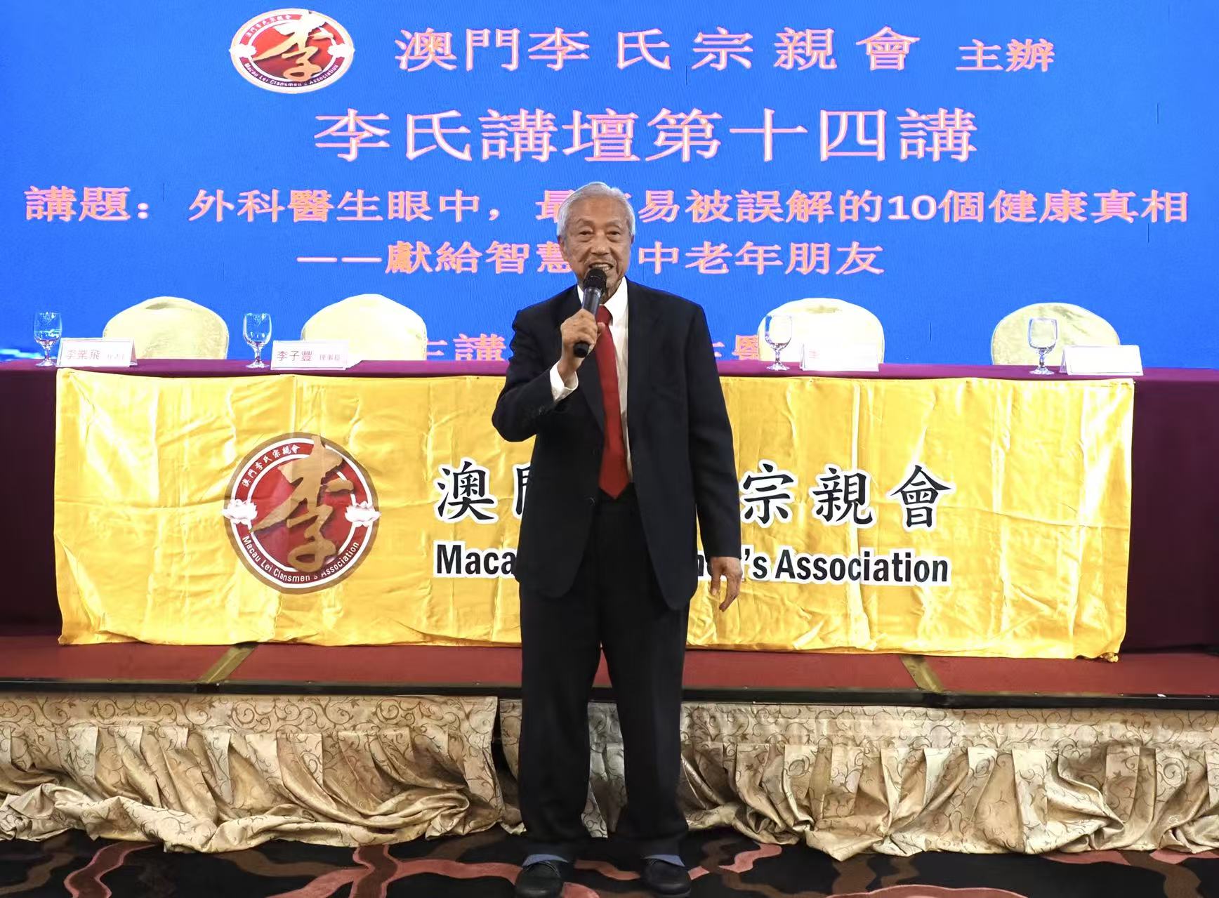 【即時新聞】澳門李氏宗親會於昨日上午十一時假萬豪軒一樓蓮花廳舉辦「李氏講壇」第十四講,活動由李氏宗親會會長李沛霖、理事長李子豐、監事長李天賞召集,特邀該會宗親、外科領域的權威專業醫生李文生以以「外科醫生眼中最容易被誤解的10個健康真相」為主題,向近百名宗親傳授科學健康知識。