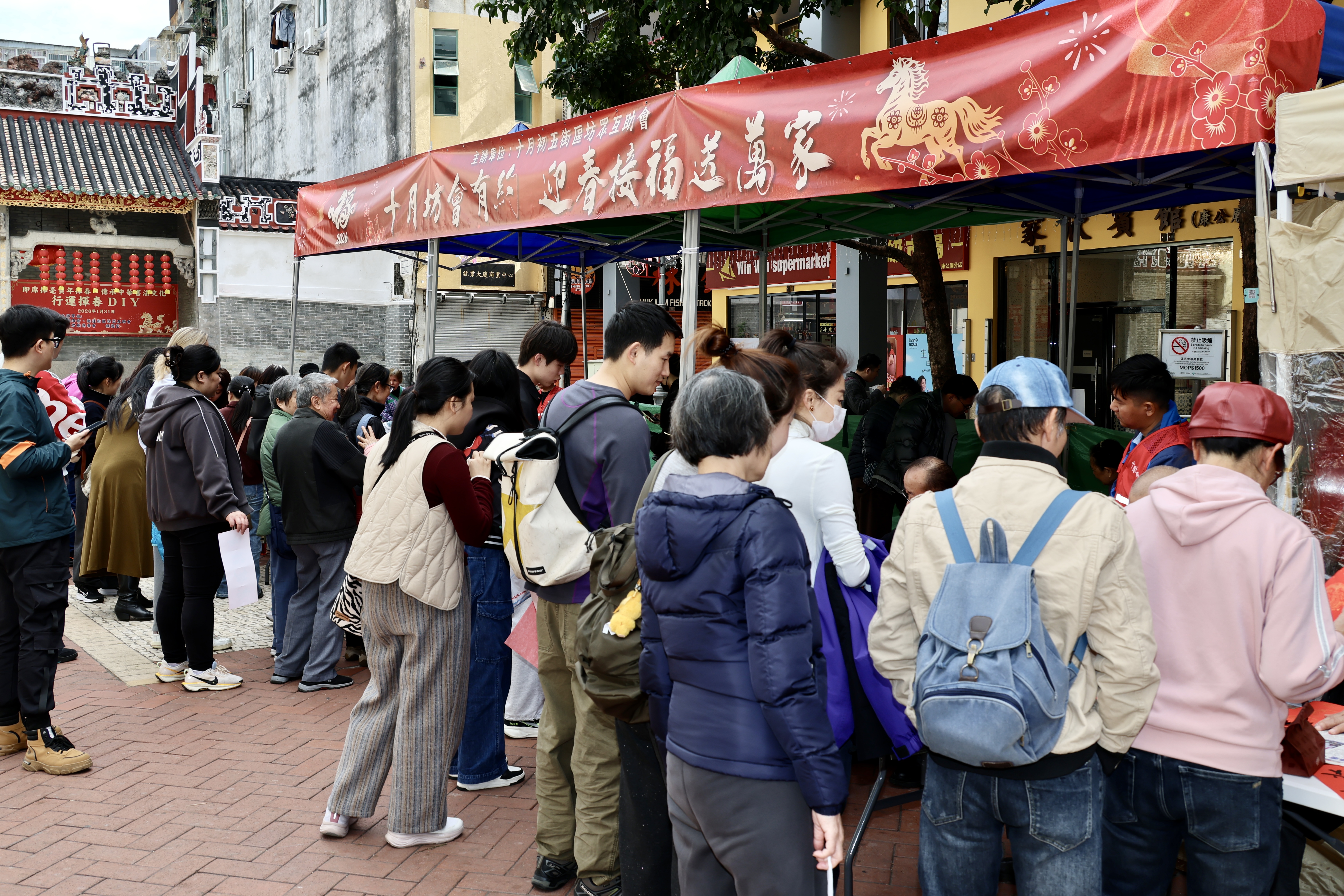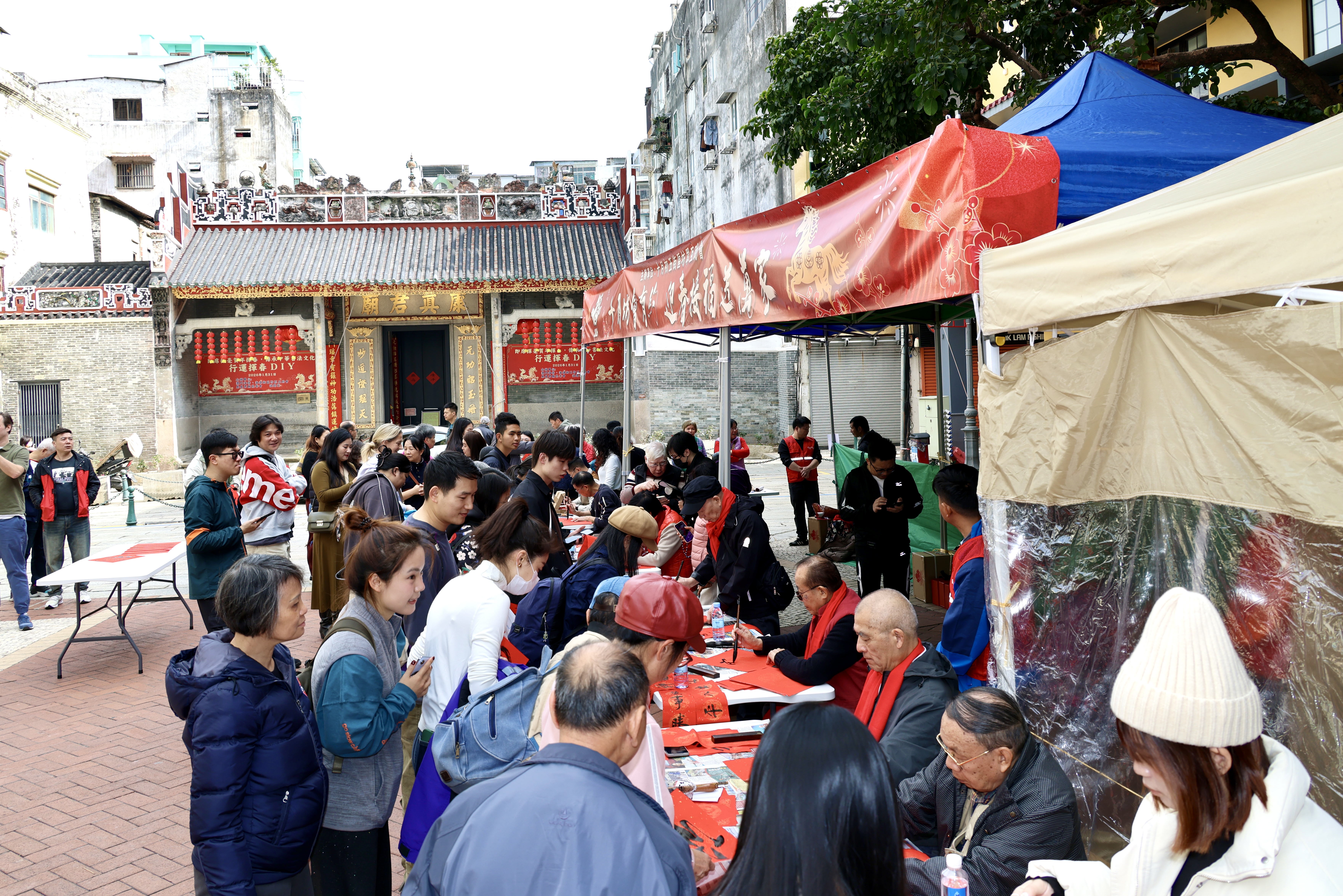 【即時新聞】十月坊會下午在康公廟前地舉辦「「十月坊會有約 迎春接福送萬家」活動,現場有10名澳門書法愛好者即席揮毫,為大家寫下新年願望以新春寄語,吸引不少居民旅客參與。