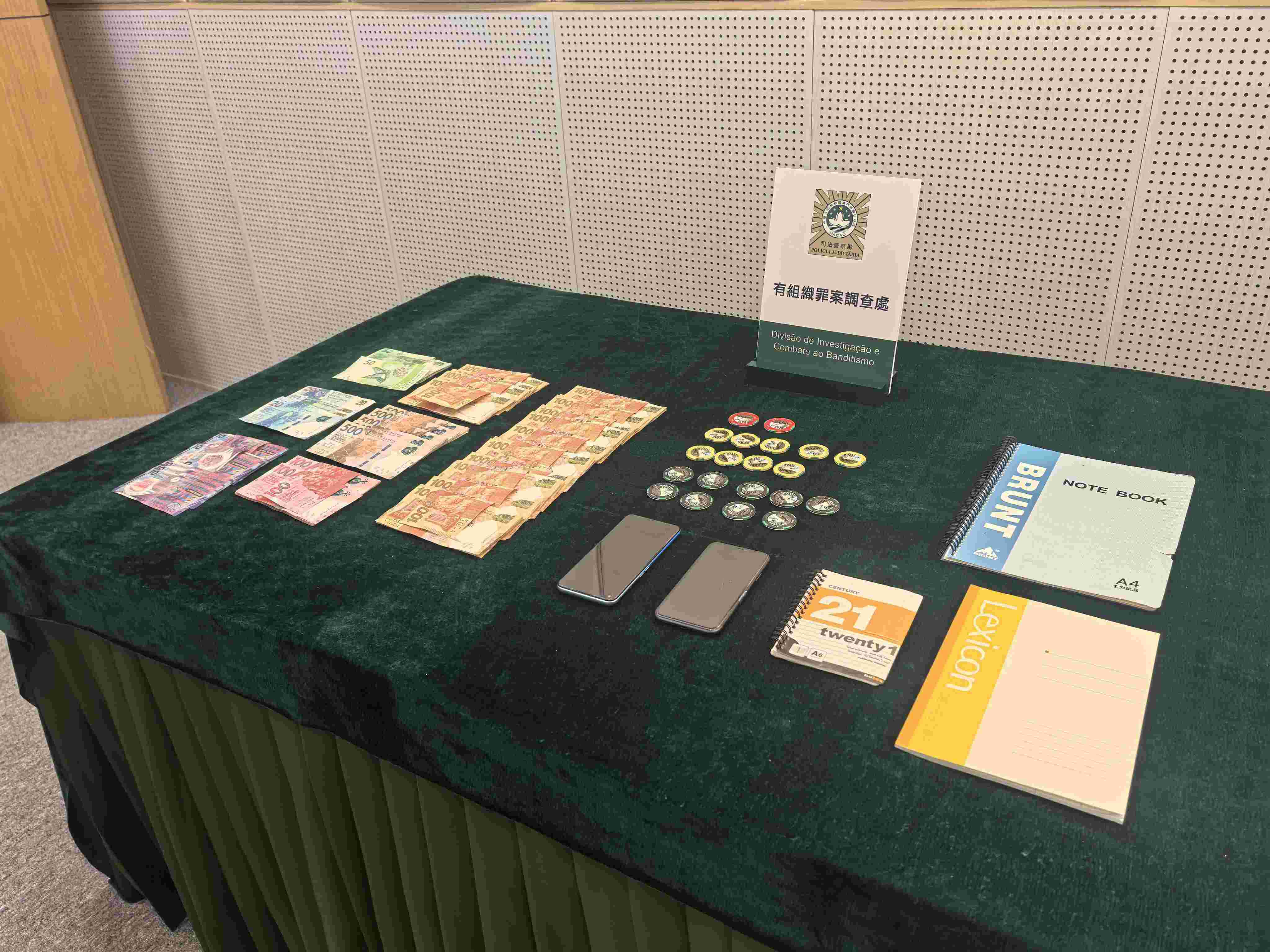 【即時新聞】司警在路氹城某酒店內的珠寶店偵破一宗非法匯兌案件,拘捕一名本地女店員,並在店內檢獲158,970港元現金、三部數簿及兩部手機。
