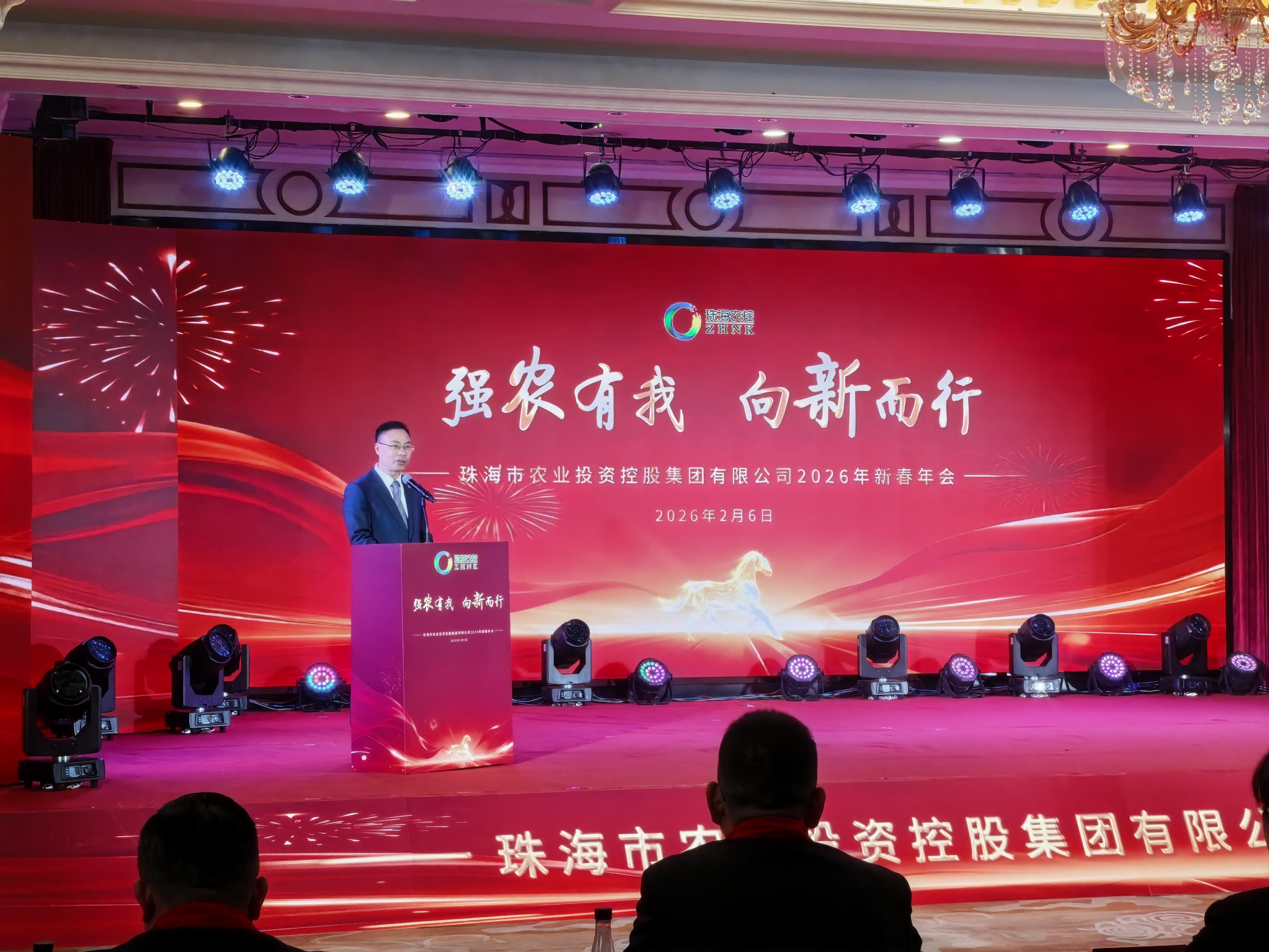 珠海農控集團董事長李鴻斌在致辭中代表農控集團黨委、董事會和經營班子,向蒞臨指導的領導嘉賓、全體農控人及各界同仁致以新春的問候。回顧2025年,農控集團深入貫徹市委“1313”思路舉措,緊緊圍繞集團“12345”戰略發展體系的部署,在農產品穩產保供、項目建設和鄉村振興等方面成效顯著,圓滿完成供港澳及“十五運”保供任務。展望2026年,農控將以“一馬當先”的闖勁、“快馬加鞭”的幹勁和“萬馬奔騰”的合力,勇擔使命、深化改革、凝聚人心,奮力譜寫農業高品質發展新篇章,為服務區域發展和民生保障貢獻農控力量。