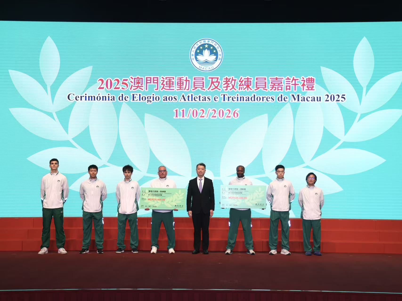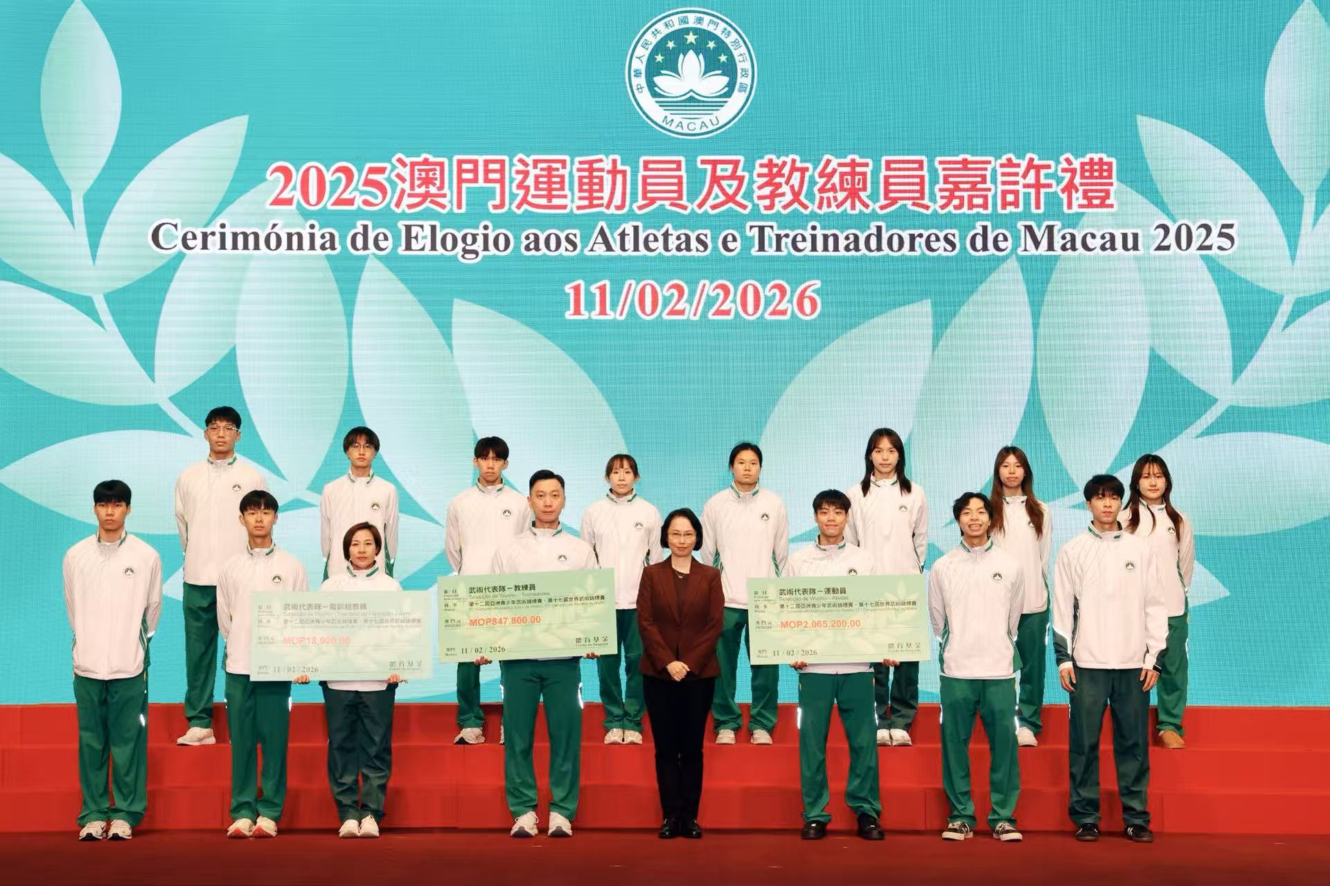 【即時新聞】為表彰在2025年度各項體育賽事中表現卓越的運動員、教練員及技術輔助人員,體育局今晚舉行「2025澳門優秀運動員及教練員嘉許禮」,同場舉行「2026體育代表團誓師儀式」,社會文化司司長柯嵐等出席,向獲獎隊伍致以祝賀,勉勵他們再接再厲,為澳門爭取更大榮譽。