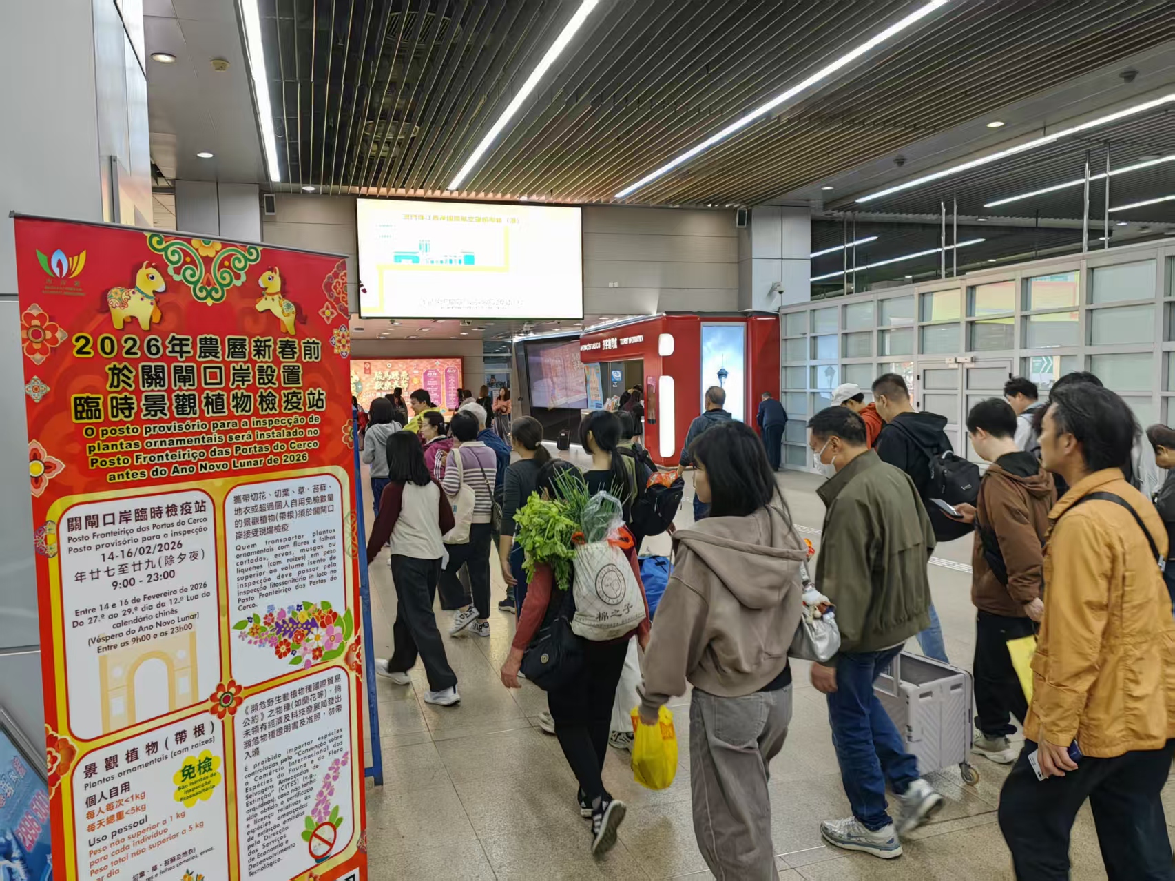 【即時新聞】農曆新年將至,為方便市民歲晚於內地購買個人自用賀年花卉回澳佈置家居,市政署將於二月十四日至十六日(農曆年廿七至年廿九)一連三天在關閘口岸旅客入境通道設置臨時景觀植物檢疫站,免費提供植物檢疫服務。同時提醒市民,未經許可切勿攜帶瀕危野生植物入境。