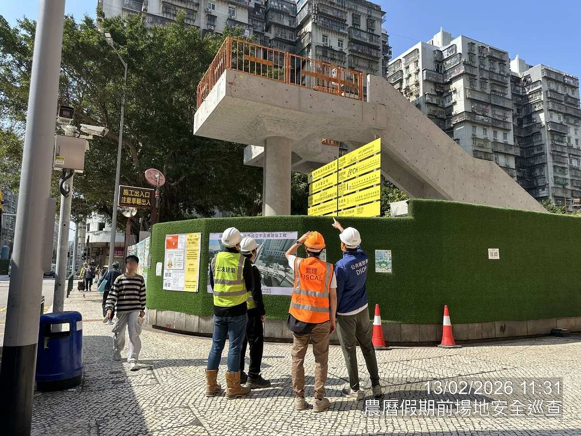【即時新聞】為確保新春期間在建中公共工程的安全,公共建設局近日持續加強巡查轄下工地,排查安全隱患,並要求各工地須切實執行新春期間的安全部署,為居民安心度歲提供保障。