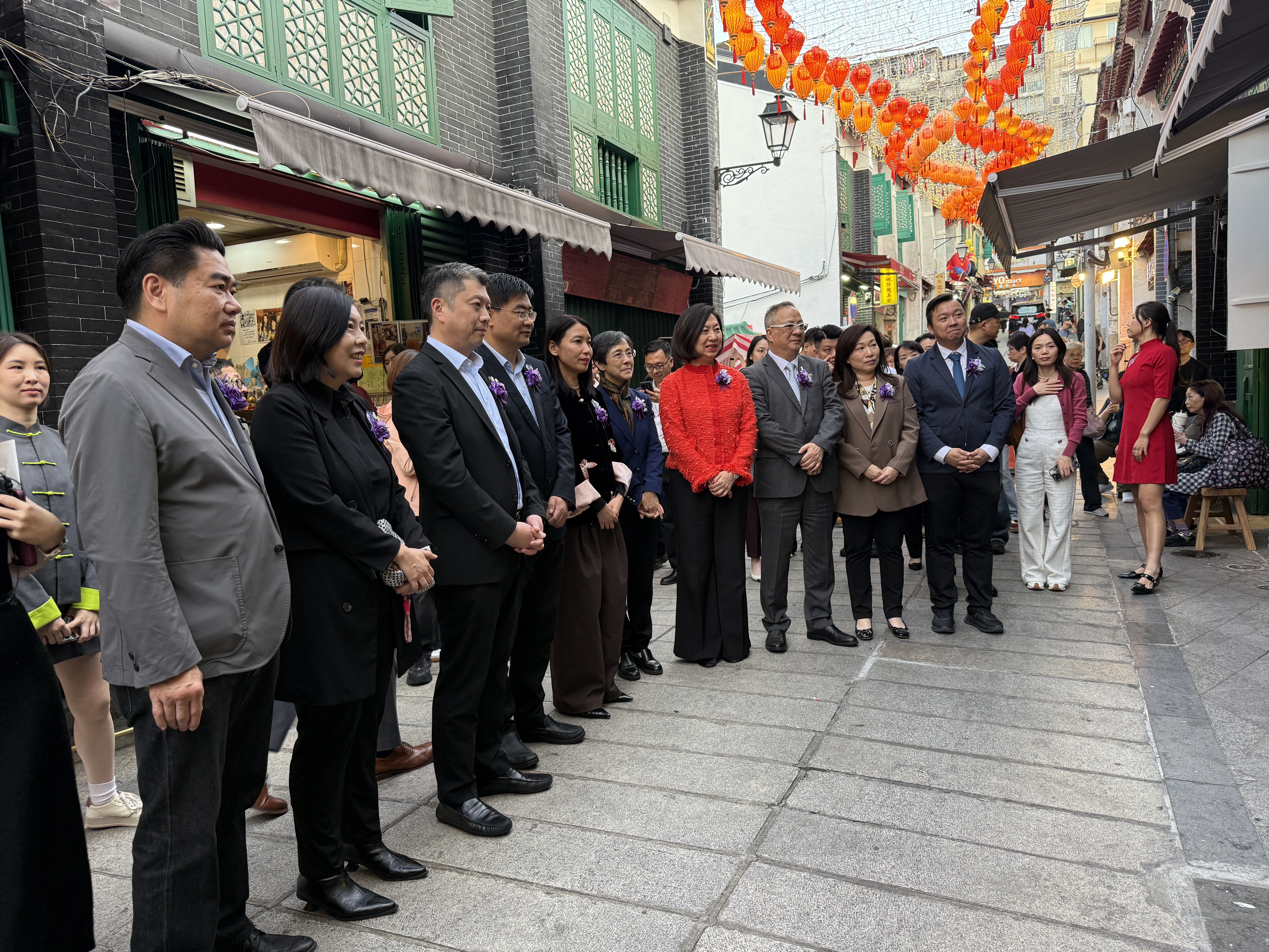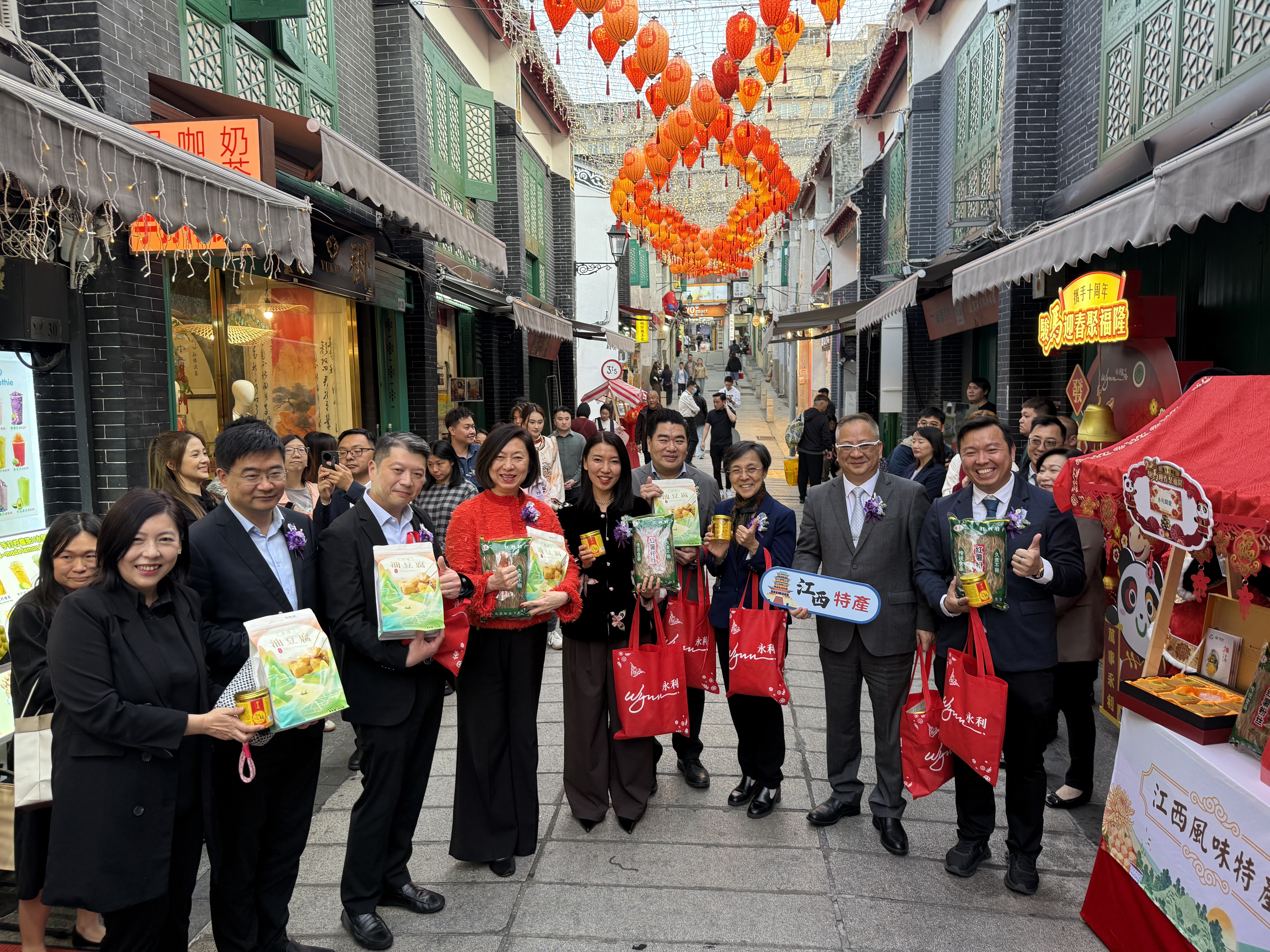 市集開幕儀式於今日下午五時半舉行,一眾嘉賓隨後巡視市集, 走訪多家文創攤位, 與商家親切交流, 了解產品特色與經營狀況, 表達對本地中小企業的支持與鼓勵, 並親身體驗市集內精心設置的新春主題打卡裝置, 感受濃厚的節慶佈置與創意氛圍。 巡禮期間, 現場播放永利與澳門工商聯會合作十週年回顧短片,生動展現雙方過去十年間緊密合作、 共同致力於服務社區中小企、 促進澳門經濟多元發展的歷程與成果。
