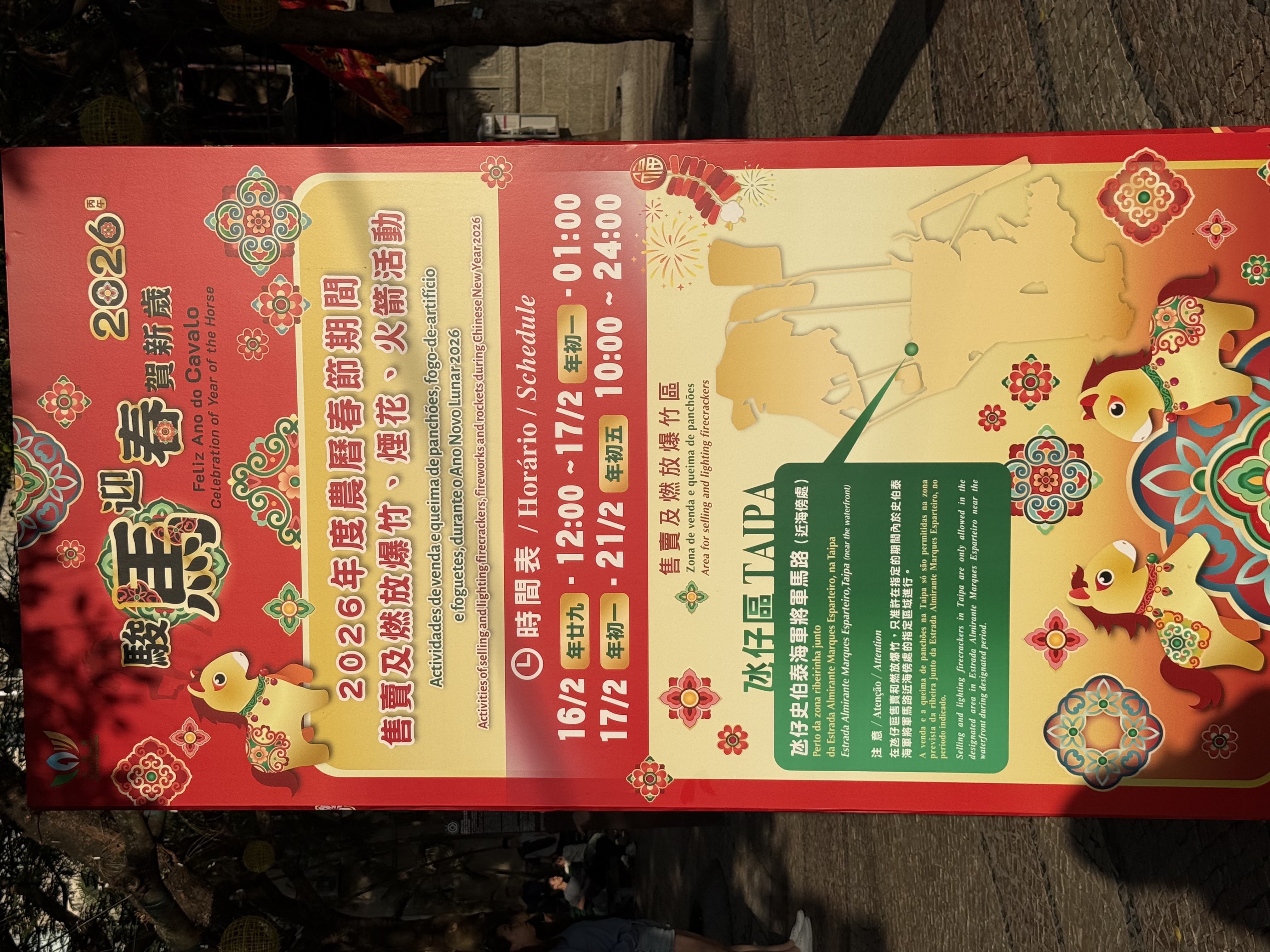 另外,爆竹燃放區今年設於史伯泰海軍將軍馬路近海傍處,營運時間為明日中午十二時至後日凌晨一時,以及2月17日(年初一)至2月21日(年初五)每日上午十時至午夜十二時。現場設六個售賣爆竹、煙花及火箭的攤檔,較過往增加兩個。