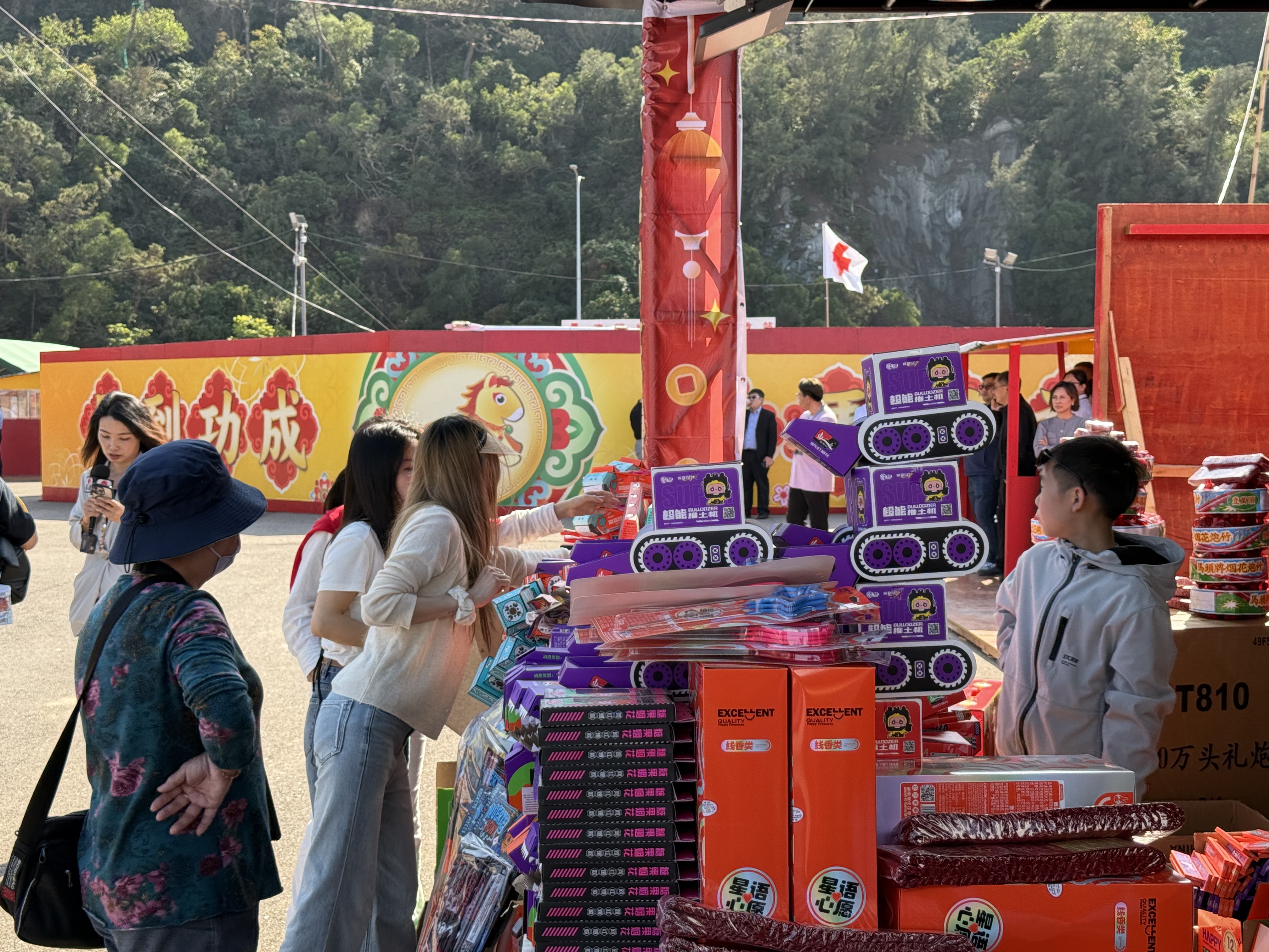 今年取消澳門區爆竹燃放區,被問及是否會對生意有更好的預期,她認為去年人流會分散到兩地,今年則會人流更集中於氹仔區,對本地銷售更有利。對於當日人流,對方稱早上人流較少,晚上大家吃完團年飯後,人流會逐漸增多,顧客人均消費約1000元左右,也有幾百元的情況,年輕人消費選擇更開放,帶小朋友的顧客多選擇仙女棒等低價品類,僅作體驗。她對銷售情況有信心,會努力到最後一天,爭取賣完所有貨。