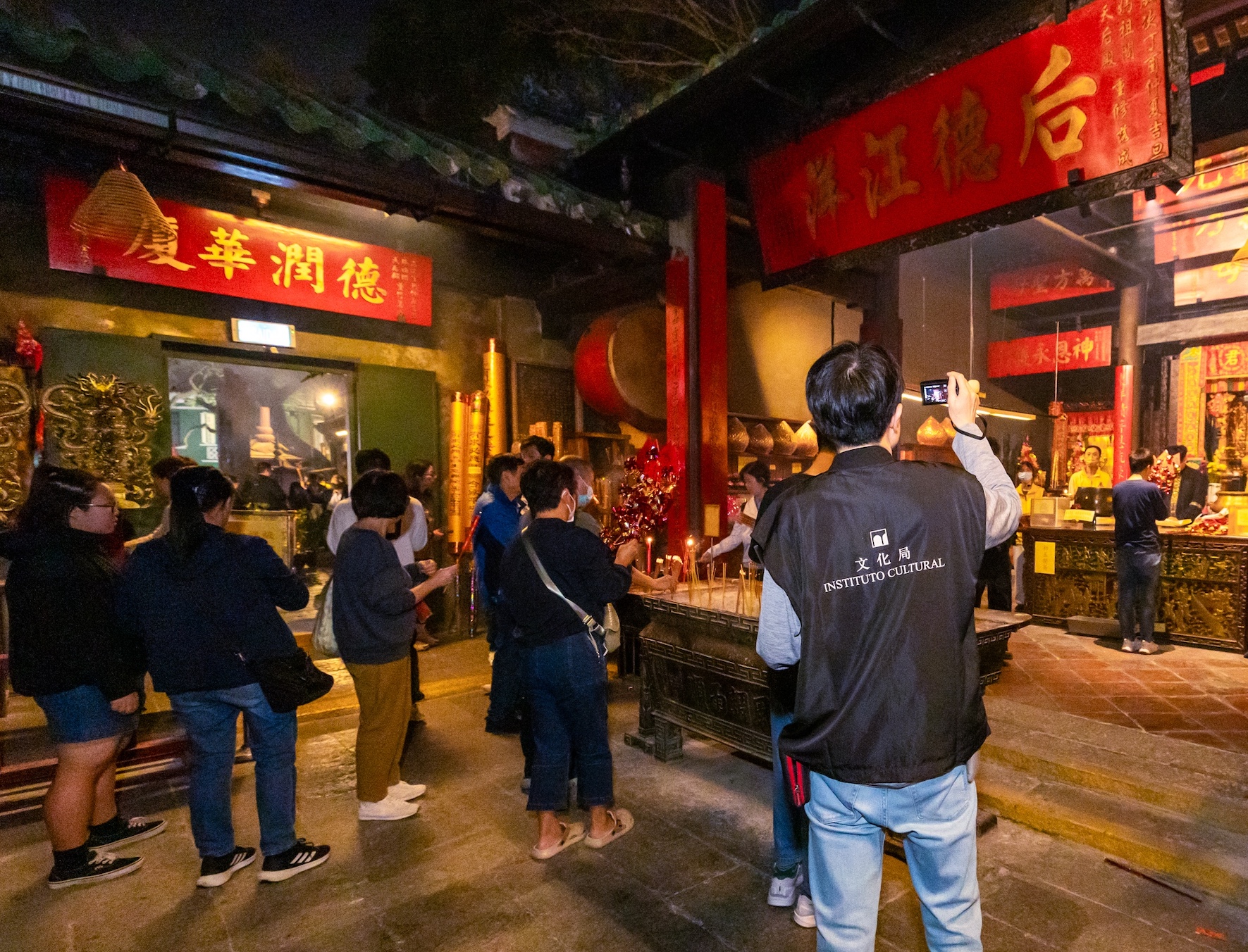 每年除夕夜均有大量居民及旅客前往廟宇上香祈福,早前,文化局局長梁惠敏及消防局代表到媽閣廟瞭解廟方工作安排,並提供相應支援及協助。農曆年廿九晚上(2月16日),文化局局長梁惠敏、副局長蔡健龍、文化遺產廳廳長蘇建明、文化遺產保護處處長何卓鋒等一行到媽閣廟、蓮峯廟及普濟禪院,加強與管理者之間的直接溝通交流,實地視察各項安全管理措施的落實情況,現場瞭解廟內人流動線規劃、秩序控制、安保及應急安排,以及香火、消防管理等情況。經過連月來協調溝通及事前部署,當晚廟宇人流如鯽,秩序良好,整體活動安全有序。