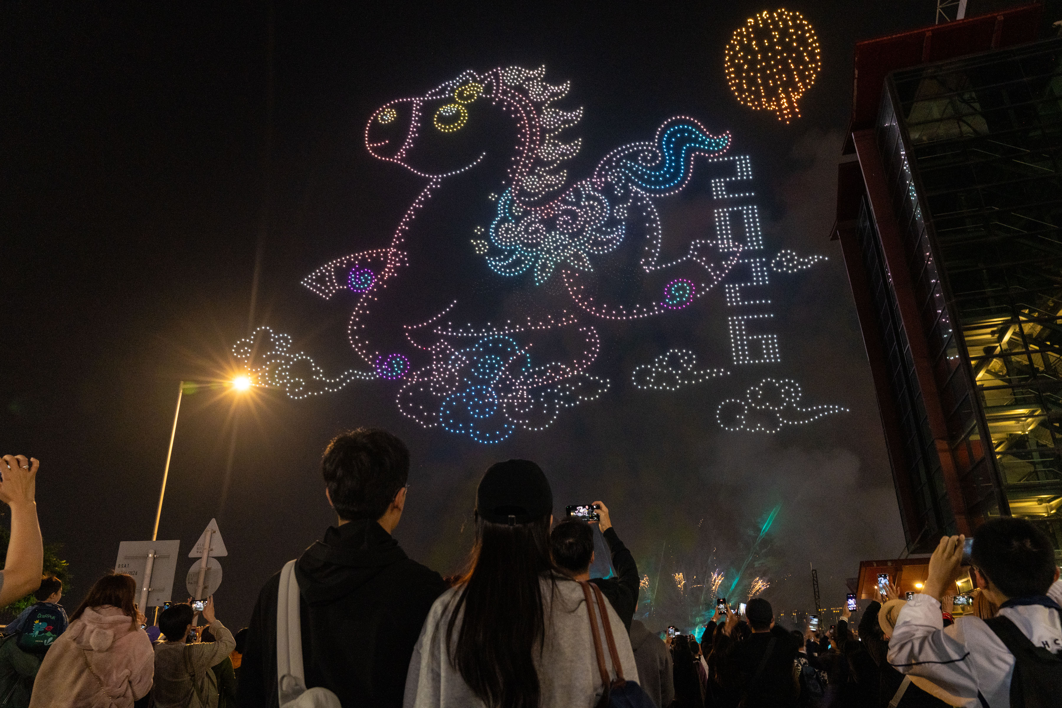 首度推出的“金駿雲翔 歡樂春節”2026無人機煙花匯演同日晚上於旅遊塔對出海面上演,採用3,888架無人機結合煙花、音樂與雷射效果,約15分鐘的演出以生肖馬與新春祝福為主題,融合創新科技與傳統節慶元素,增強演出的層次感與觀賞性,豐富節慶體驗。第二及第三場無人機煙花匯演場次將於年初七(2月23日)及正月十五(3月3日)晚上9時再度上演。