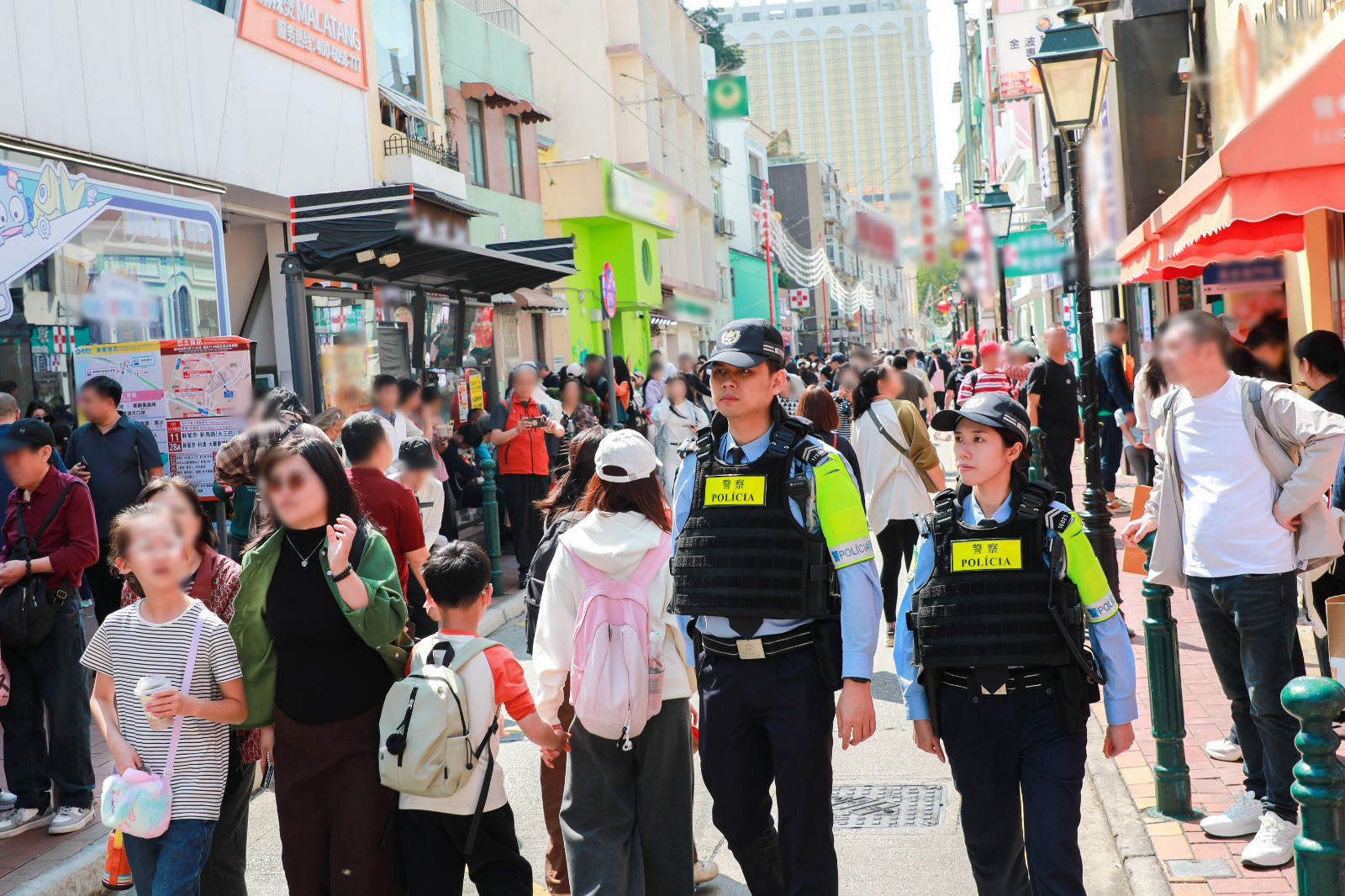 春節假期期間,本澳新馬路、大三巴、金光大道,以及在氹仔舊城區和澳門關前後街設置的“農曆新年行人專用區”等主要旅遊熱點遊人如織。面對人流大幅增加的情況,治安警察局已提前制定一系列警務部署,在旅遊熱點加強巡邏防控,亦於行人專用區周邊區域實施相應的臨時交通措施,並根據現場人流變化動態調整警力配置。警方於2月17日至23日均在大三巴短暫實施人潮管制措施,有力保障遊客出行安全。