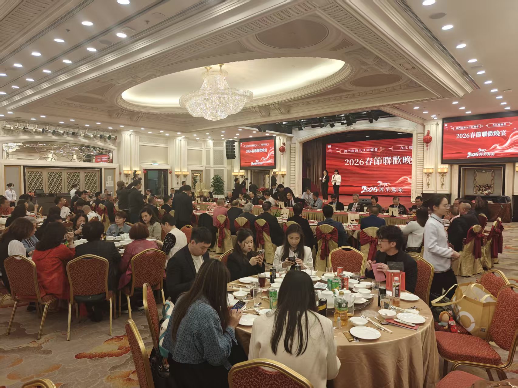 【即時新聞】澳門南海區九江同鄉會、九江總商會今晚假萬豪軒酒樓舉行丙午年春節聯歡晚宴,筵開十數圍,場面熱鬧。九江同鄉會表示,未來,將繼續發揚傳統,深化與家鄉聯繫,推動文化交流;積極吸納青年參與,促進會務薪火相傳,攜手為澳門與家鄉的高品質發展盡一分力量。