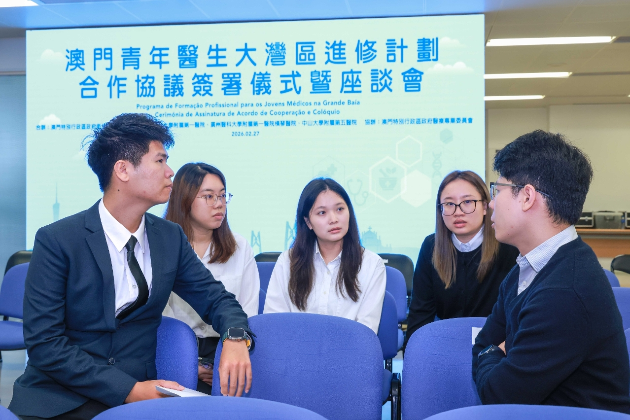 【即時新聞】為落實特區政府的施政方針,提升本澳青年醫生專業技術能力、職業競爭力及擴闊發展空間,助力其更好地融入國家發展大局,並推動本澳醫療技術進步,實現建設“幸福澳門”的施政願景。衛生局與中山大學附屬第一醫院、中山大學附屬第五醫院、南方醫科大學、廣州醫科大學附屬第一醫院橫琴醫院合辦,由醫療專業委員會協辦的《澳門青年醫生大灣區進修計劃》,日前舉行合作協議簽署儀式暨座談會。