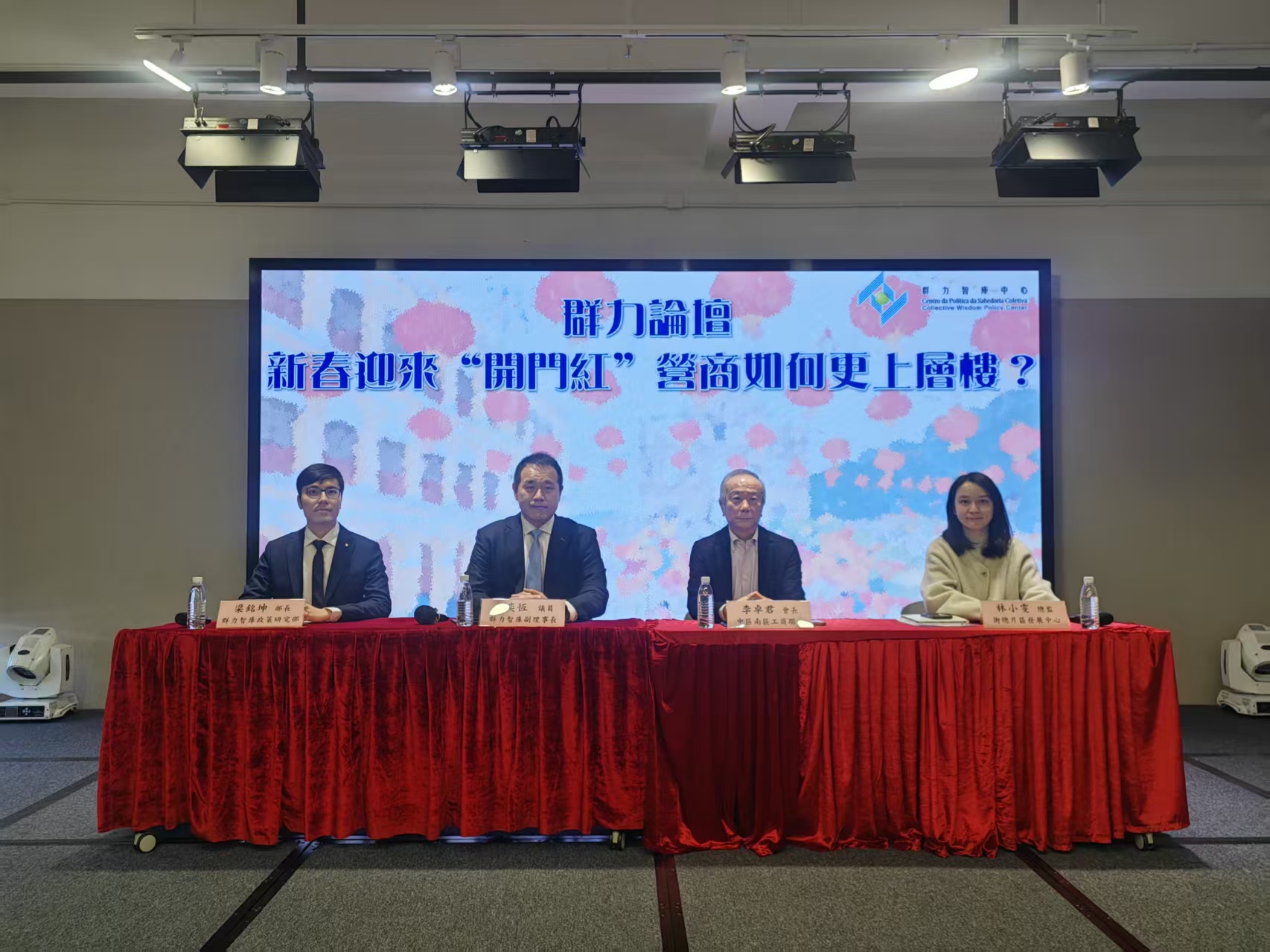 【即時新聞】今年春節黃金周期間,澳門入境旅客數量持續攀升,創下歷史新高,惟人流仍高度集中於大三巴、氹仔半島等傳統旅遊區,民生區則相對淡靜。群力智庫今日上午舉辦「群力論壇—新春迎來『開門紅』 營商如何更上層樓」,由立法會議員、群力智庫副理事長顏奕恆,中區南區工商聯會會長李卓君,以及街總片區發展中心總監林小雯擔任主講嘉賓,與坊會代表、市民現場交流,為澳門旅遊與營商發展建言獻策。