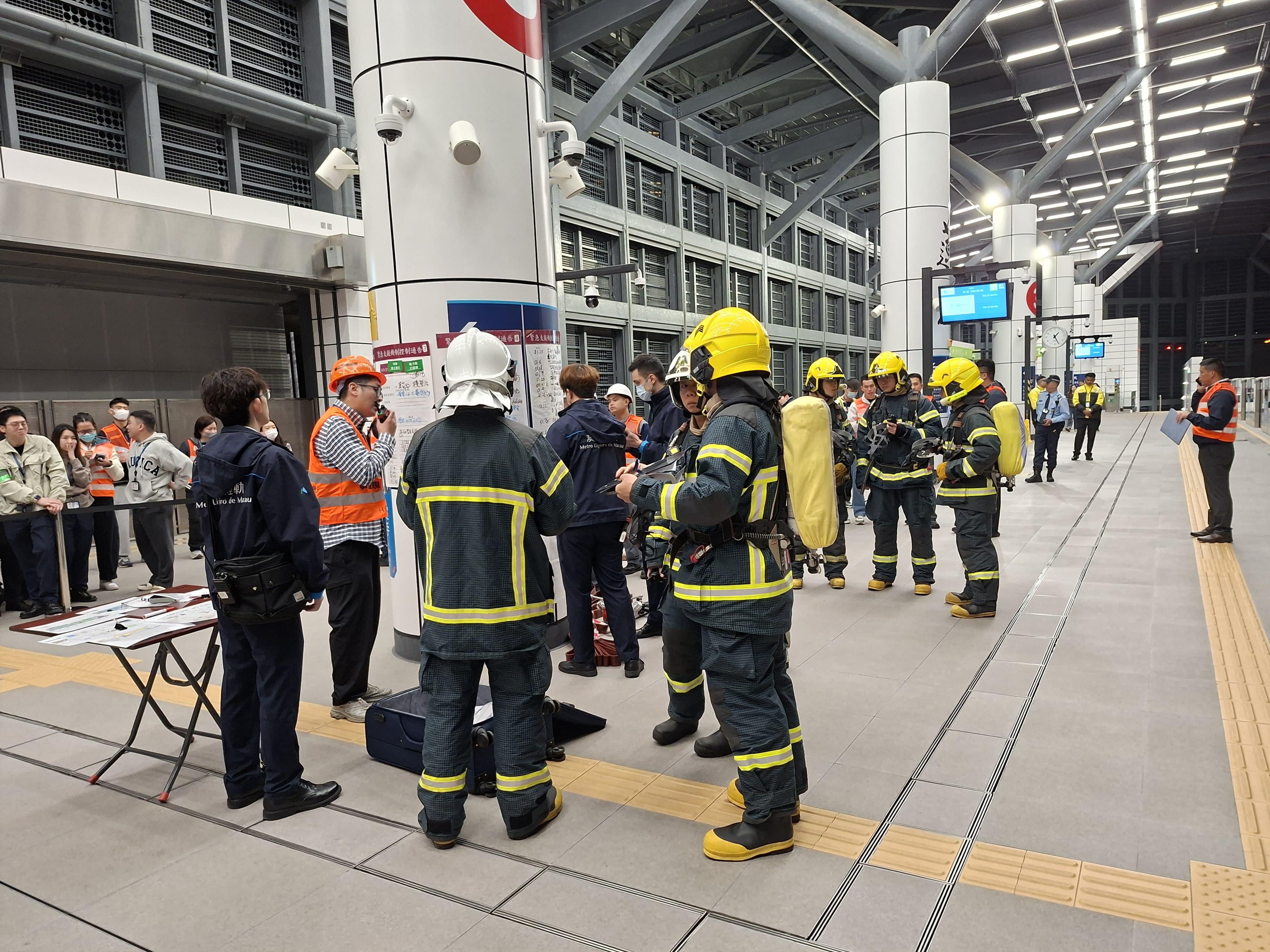 演習過程模擬一列載有約 40名乘客的輕軌列車(四節車廂)由橫琴線蓮花站開往橫琴站期間,首節車廂電器櫃突然冒煙,列車於河底隧道路段完全失去動力而停下,輕軌公司人員按照既定機制啟動緊急疏散程序,並向相關部門通報及請求支援。疏散過程中,模擬有乘客因驚慌拉下緊急手柄打開車門自行逃生,列車車長通報後隨即組織其餘乘客沿緊急人行通道往蓮花站月台疏散;行動不便的乘客則轉移至附近疏散點等候救援。消防局救援隊伍到達後進入河底隧道肇事列車開展搜救、滅火及排煙工作,並順利接應自行逃生及行動不便的乘客;並模擬其中兩名乘客表示不適,初步護理後送院治理。
